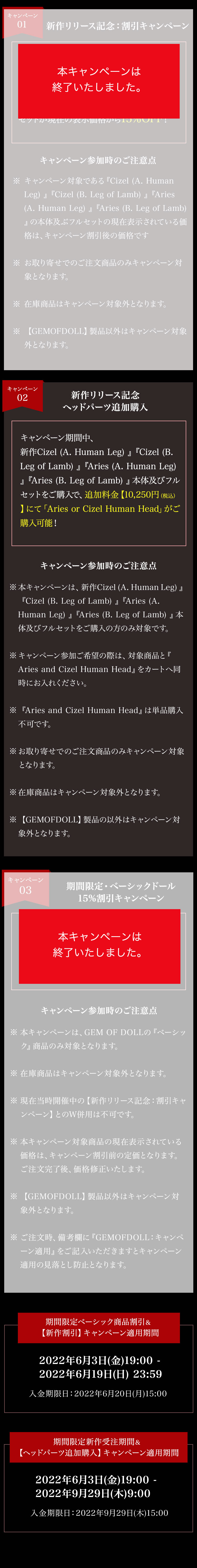 【期間限定・ベーシックドール15%割引キャンペーン】キャンペーン期間内に、 GEMOFDOLLのお取り寄せドール本体およびフルセットが現在の表示価格から【15%OFF】!
