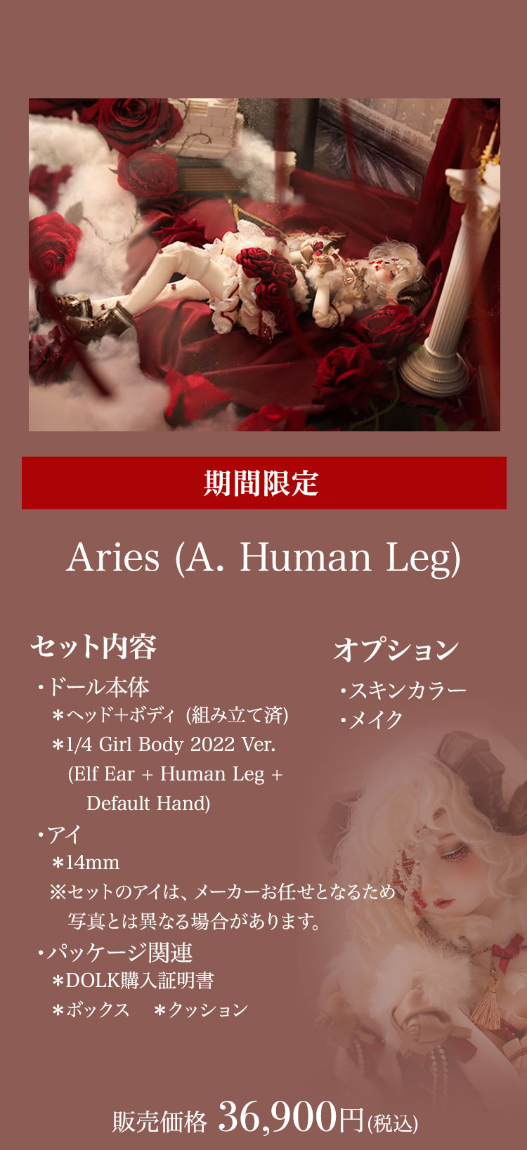 【新作リリース記念:ヘッドパーツ追加購入】キャンペーン期間中、 新作Cizel (A. Human Leg) 』『Cizel (B. Leg of Lamb) 』『Aries (A. Human Leg) 』『Aries (B. Leg of Lamb) 』本体及びフルセットをご購入で、追加料金【10,250円(税込)】にて「Aries or Cizel Human Head」がご購入可能!