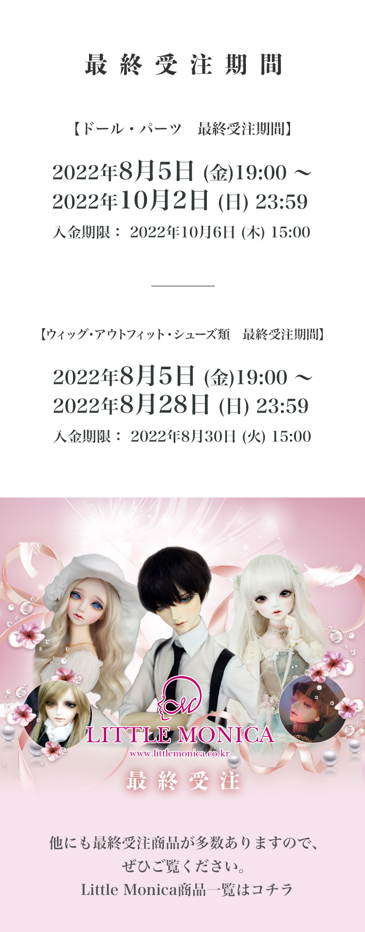 LITTLE MONICA | 期間限定・ベーシックドール最終販売 のお知らせ