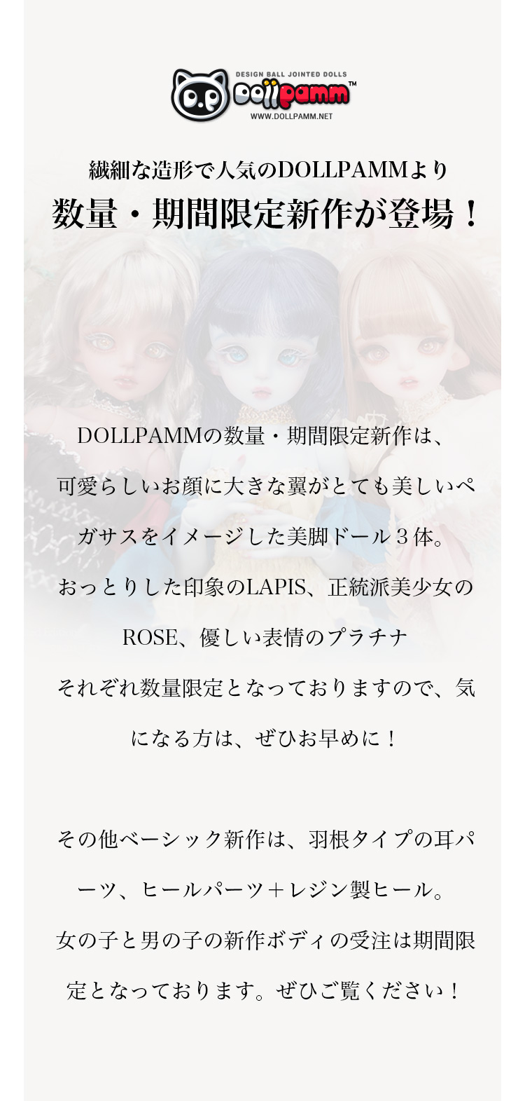 DOLL PAMM | 数量・期間限定 新作ドール・パーツ のお知らせ