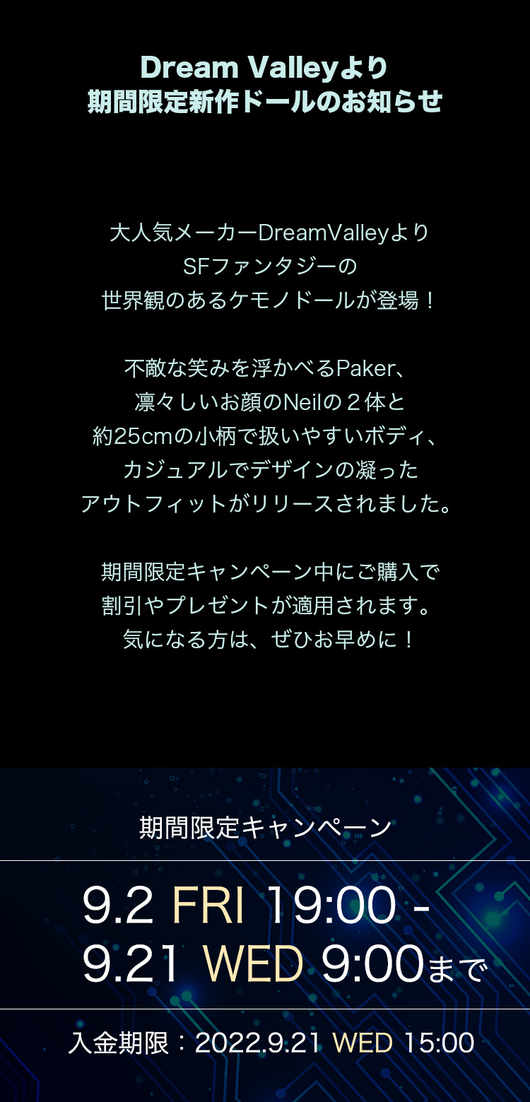 DreamValley | 期間限定新作・期間限定キャンペーン のお知らせ