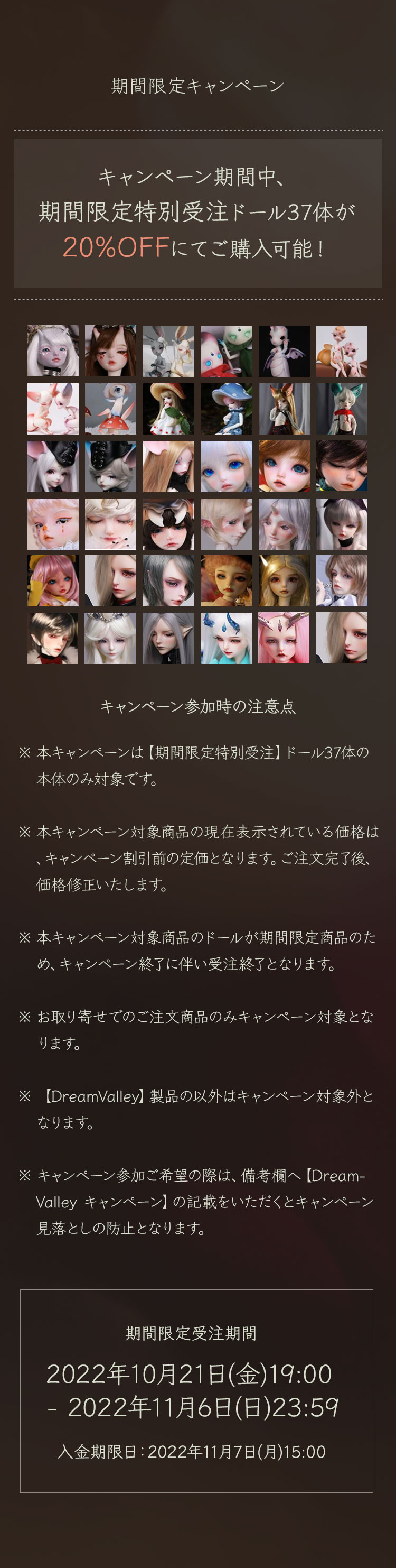 キャンペーン期間中、 【期間限定特別受注】ドール37体が【20%OFF】にてご購入可能!