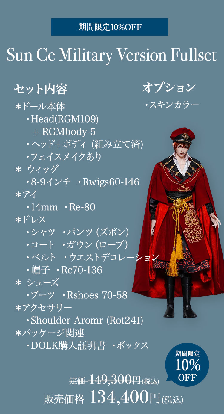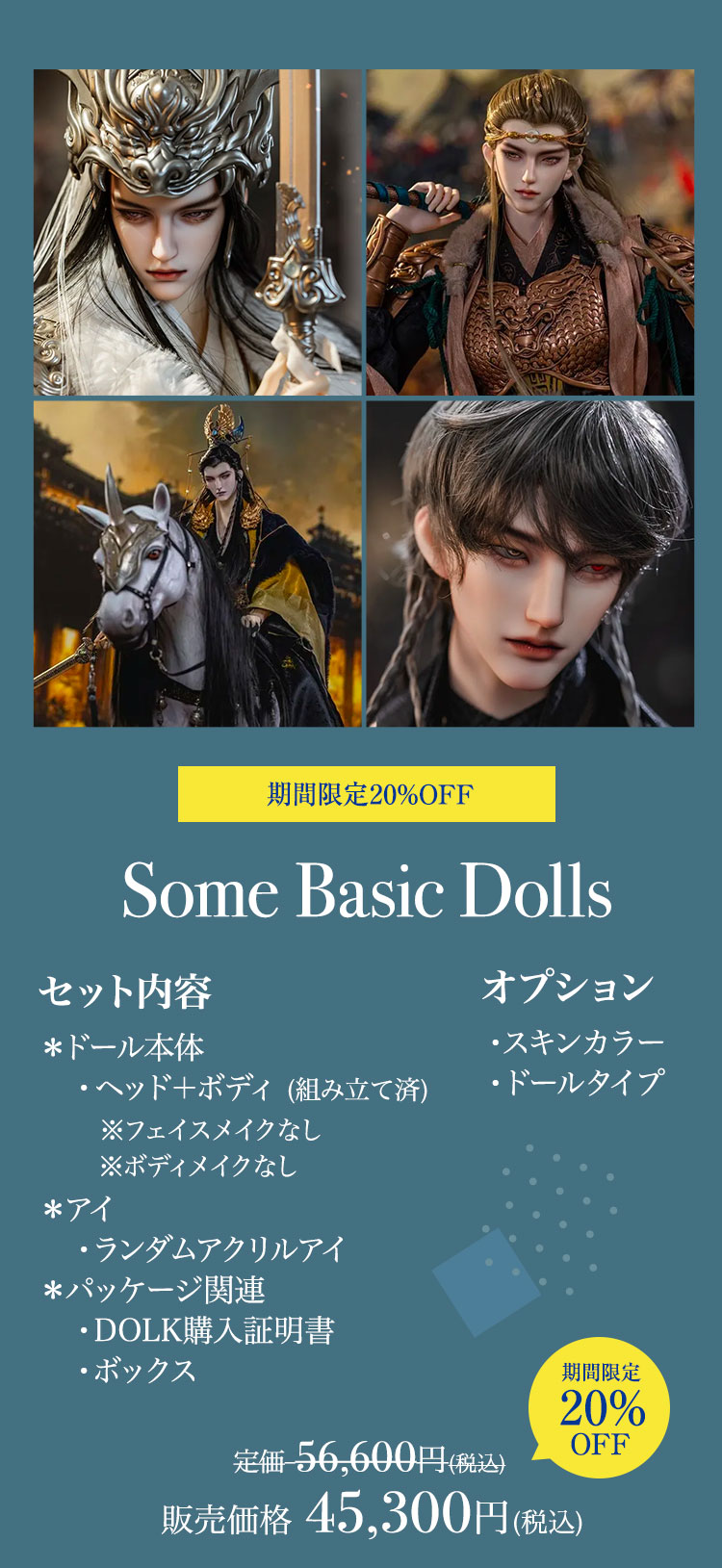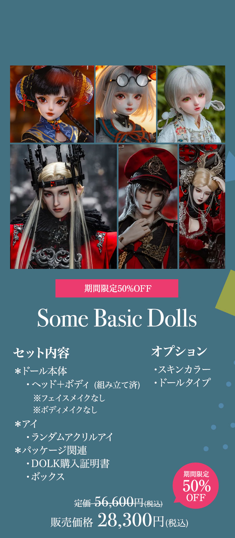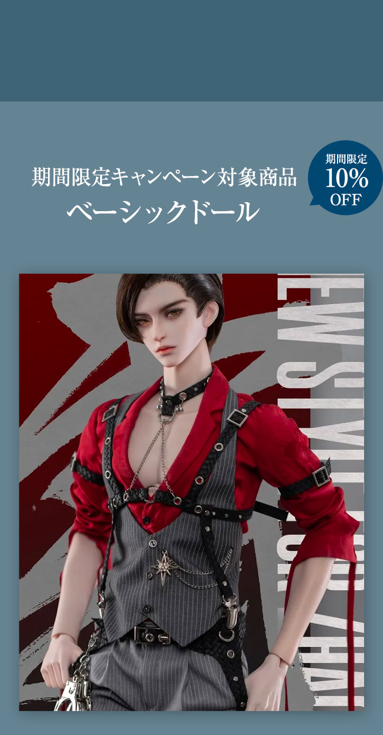 見目麗しい青年たちをはじめ、美しい少女まで 対象のドール達を特別価格でお迎えできるビッグチャンス。 要注目は12種類のドール本体、造形美が際立つ10種ボディが対象の50%OFFセール! 通常の半額という特価でお迎えできるレアなスーパーセールです。 さらに定番人気のベーシックドールや小物類も、 現在の表示価格から10%OFFでお迎えできる、夏の大感謝祭となっています。 素敵なキャンペーンをどうぞお見逃しなく♪