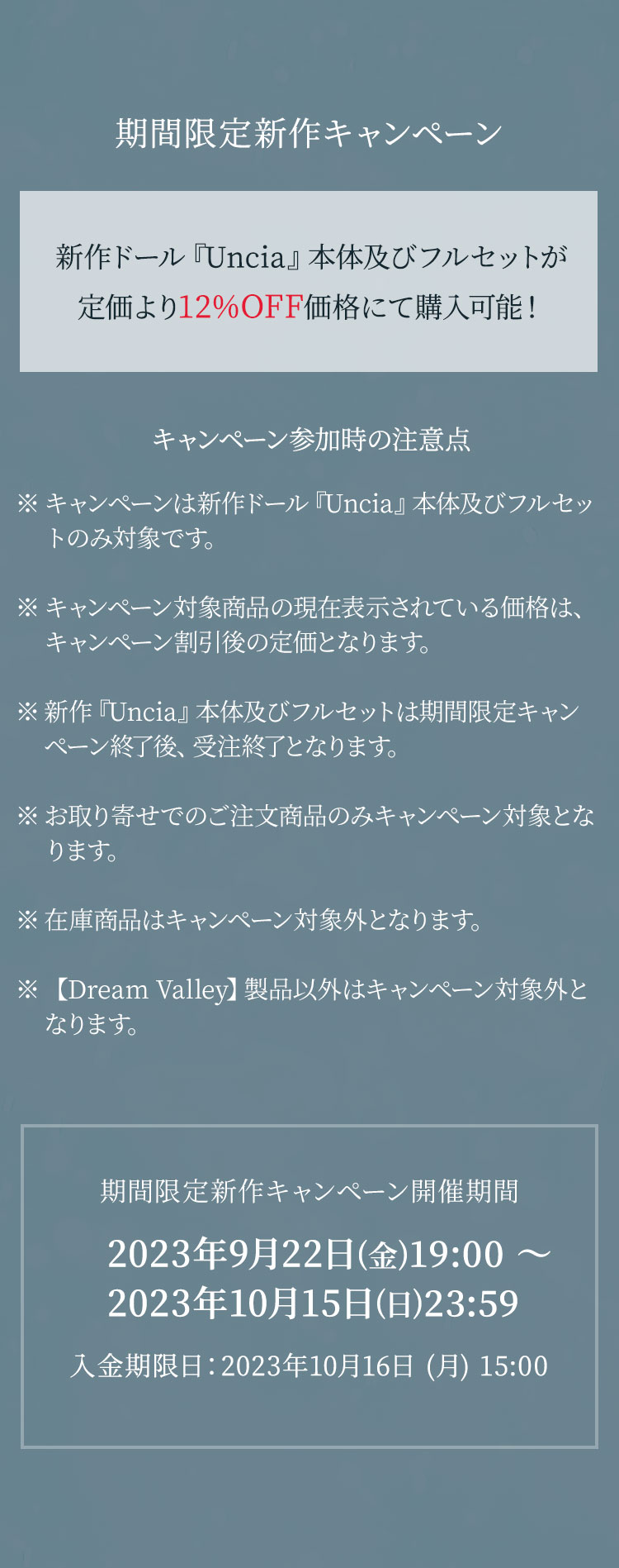 期間限定新作キャンペーン開催期間:2023年9月22日(金)19:00〜2023年10月15日(日)23:59