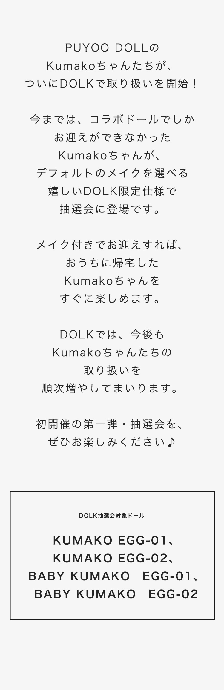 PUYOO DOLL | PUYOO DOLLのKumakoちゃん達が、DOLK限定仕様で抽選会に登場!のお知らせ