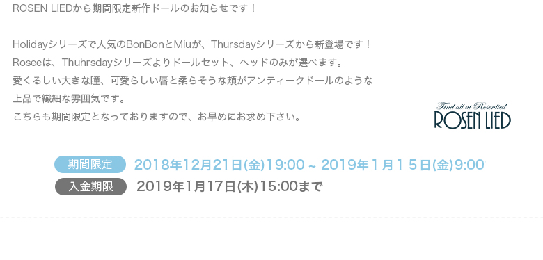 【【期間限定】Basic BonBon】の商品詳細はこちら 【【期間限定】Basic Miu】の商品詳細はこちら 【【期間限定】Basic Rosee】の商品詳細はこちら 【【期間限定】Rosee Head】の商品詳細はこちら メーカー商品一覧はこちら