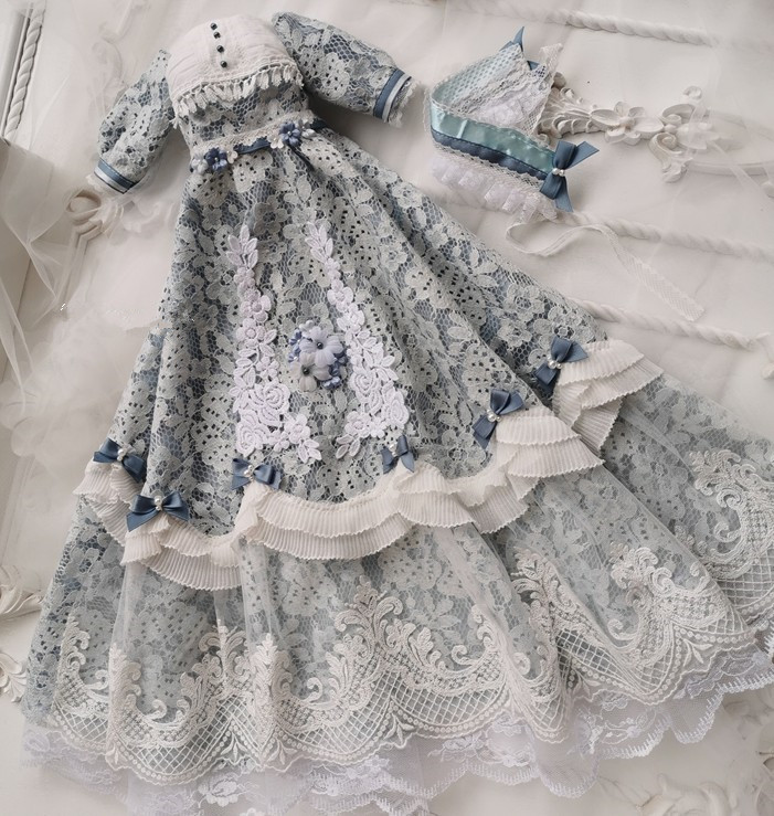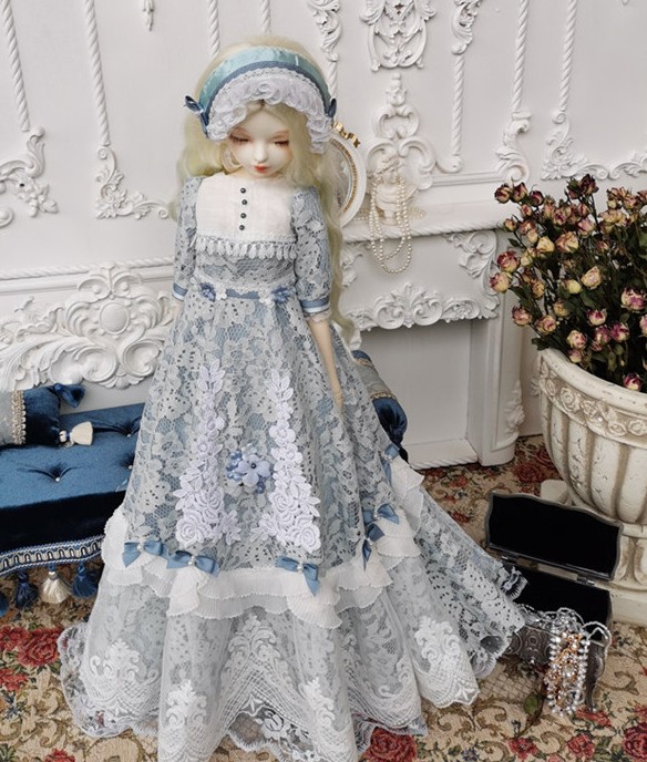 レースフリルドレス(Blue) - 40cmsize