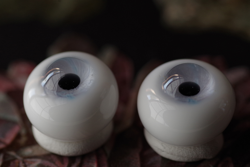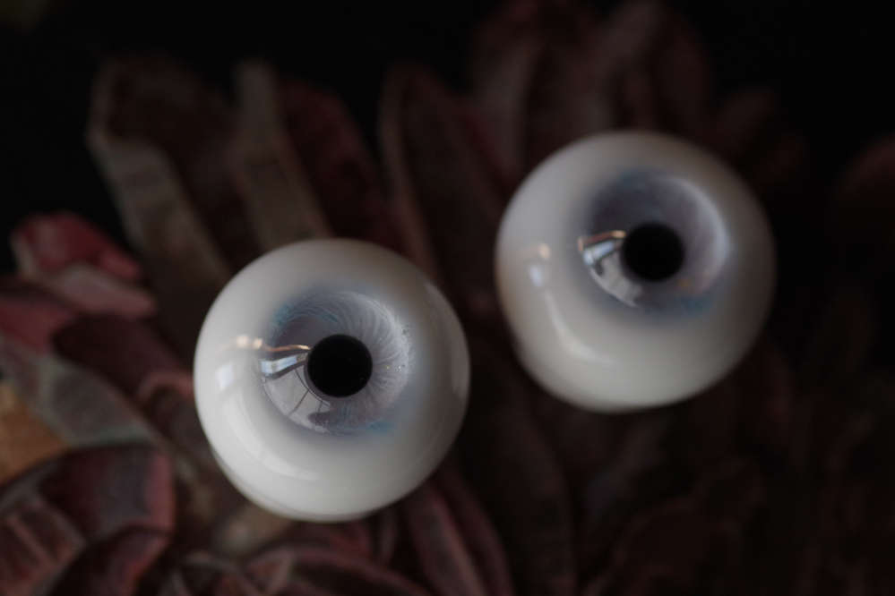 ※ハンドメイドのためレンズ部に細かい気泡、虹彩のピッチが均一ではない、黒目の大きさやドームなど左右で同じ出来ではありません。