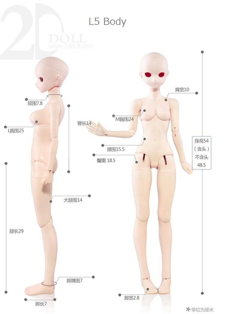 | 54cm Girl L5-2大胸(I号) | 54 | 20.3 | 7.8 | 10 | 25 | 15.5 | 24.5 | 14 | --- | 29 | --- | 7 | 2.8 | 8~9 | 18~20 | |