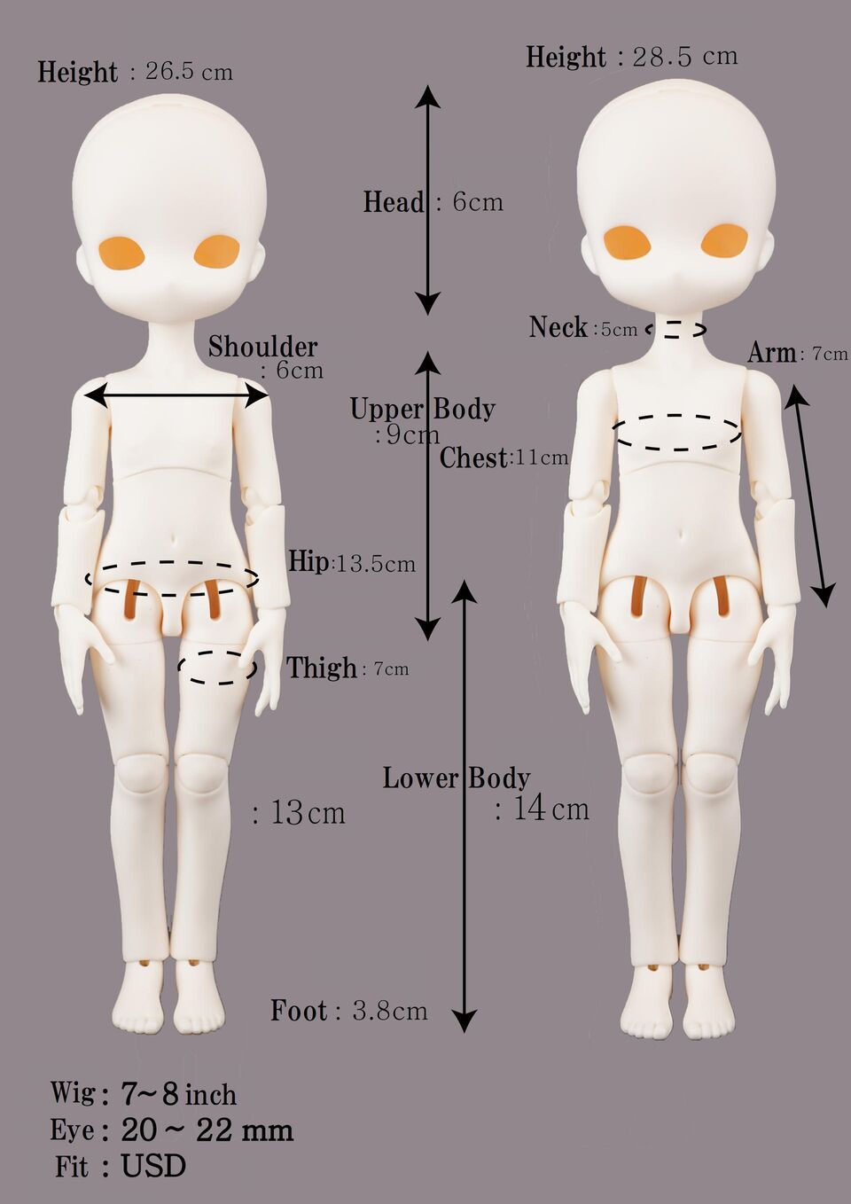 Height(Include Head): 26.5cm / 28.5cm