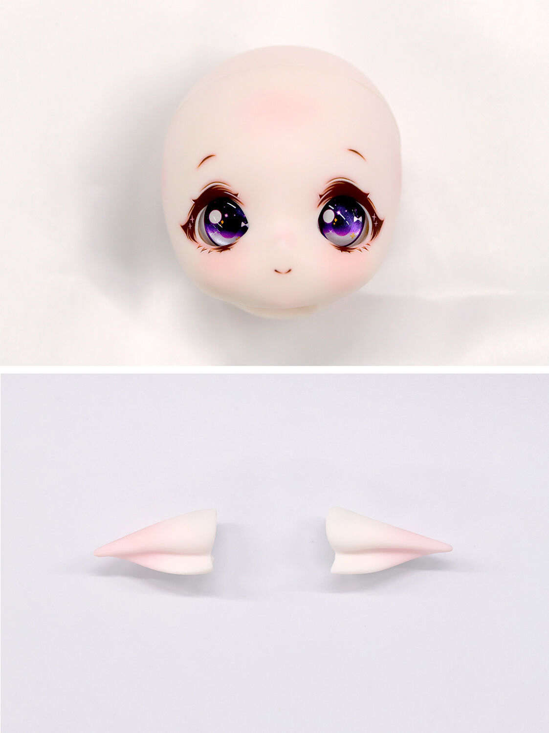 MIMIELによるデザイン画をベースに、人気アーティストのミャン氏がメイクを手掛けました。アイラインに十字のようなデザインを施し、アイシャドウやチークはオレンジがかったピンク系にて仕上げています。微笑みを浮かべた口元とタレ目が、まさに天使の表情になっています。