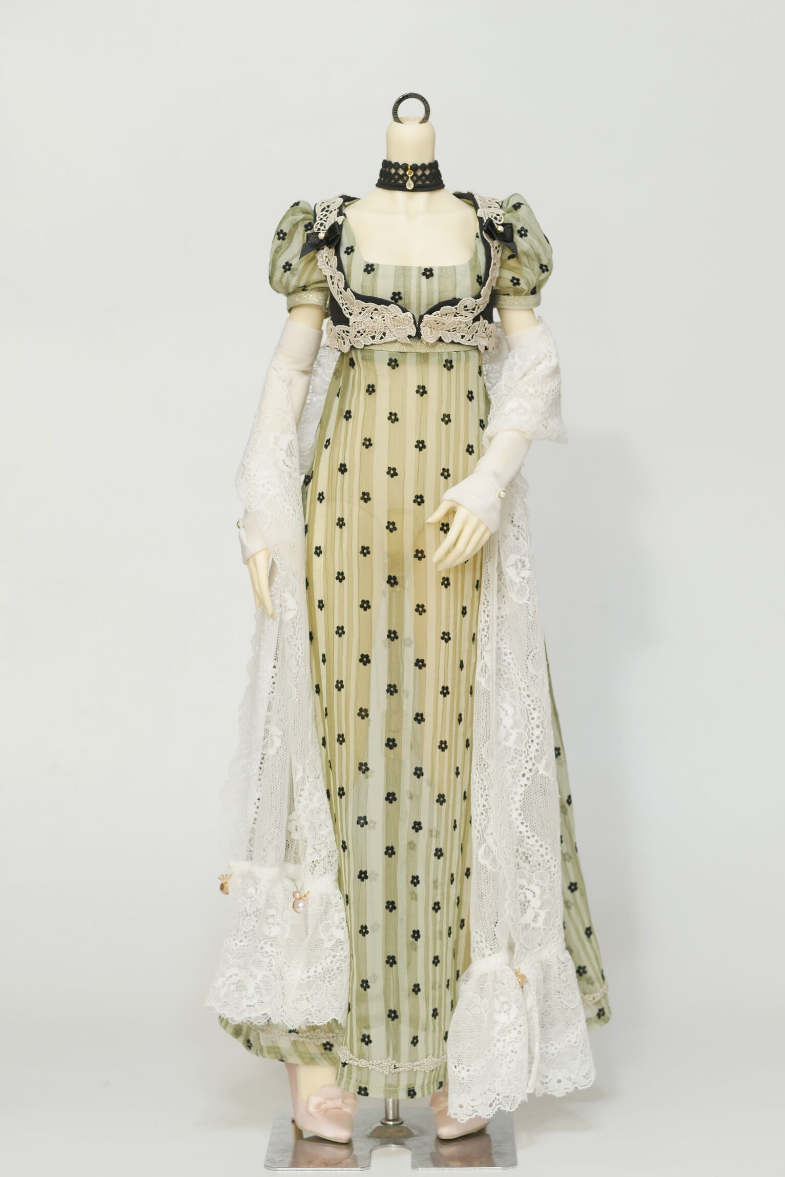 ドレス担当のGODZILLA BJD は、アンティークな雰囲気を持ちつつ現代風のアレンジで芸術的な作品が特徴のドレスメーカーです。芸術の神様に祝福されたかのような麗しの美少女Lanceliaのドレス。落ち着きのあるグラスグリーンのシンプルなワンピース。