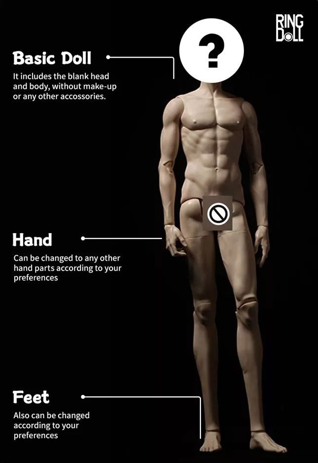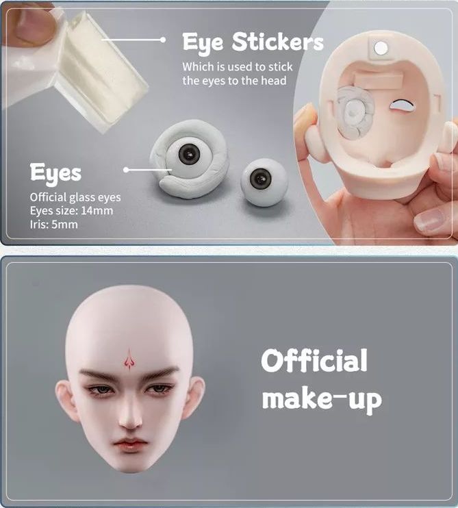 お届けする商品本体(ヘッド+ボディ など)について、 組み立て状態やメイクの有無・ボディの種類などが記載されます。