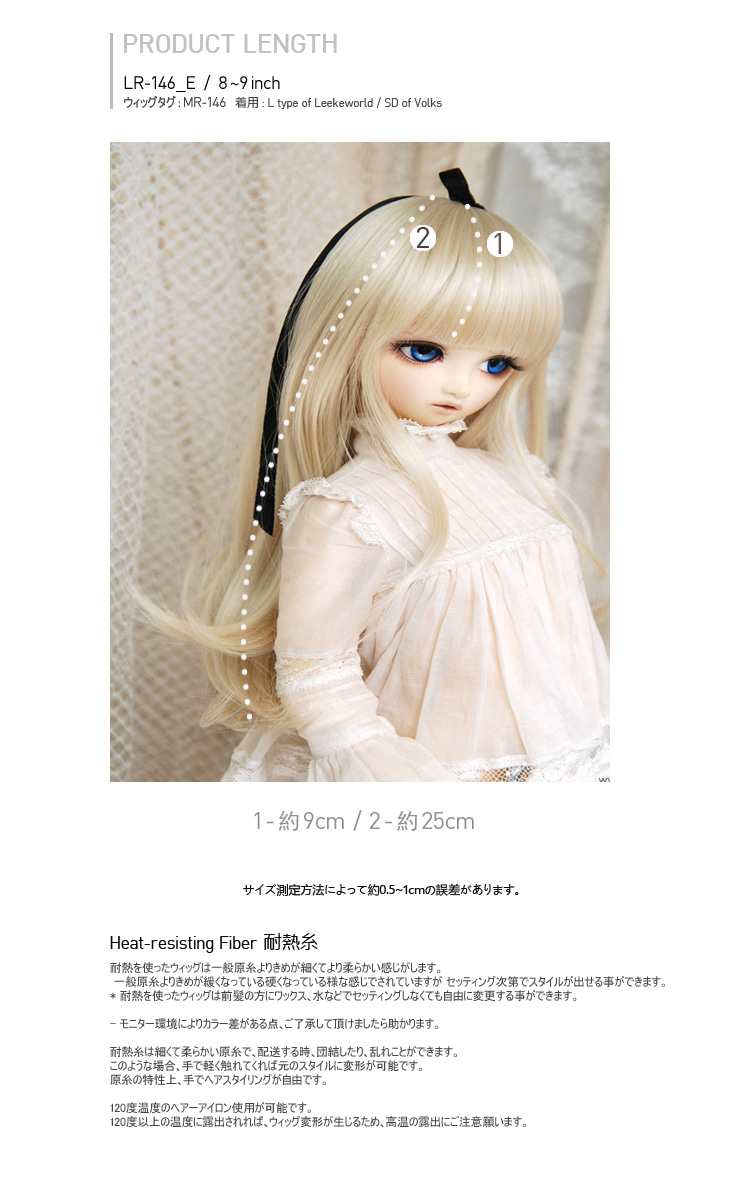 アイ・ウィッグの場合は、商品のサイズ情報が表示されます。