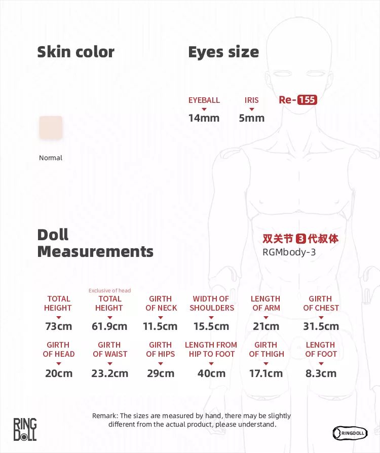 | RGMbody-3 Boy | 70.5 | 20.5 | 11.3 | 16.5 | 31.5 | 23.5 | 28.5 | 21 | --- | 40 | 17 | 8.5 | --- | 7~8 | 14 |
