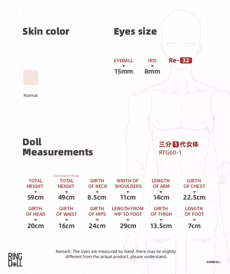 | RTG60-1 Girl | 59 | 20 | 8.5 | 11 | 22.5 | 16 | 24 | 16 | --- | 32 | --- | 7 | --- | 8~9 | 15 |