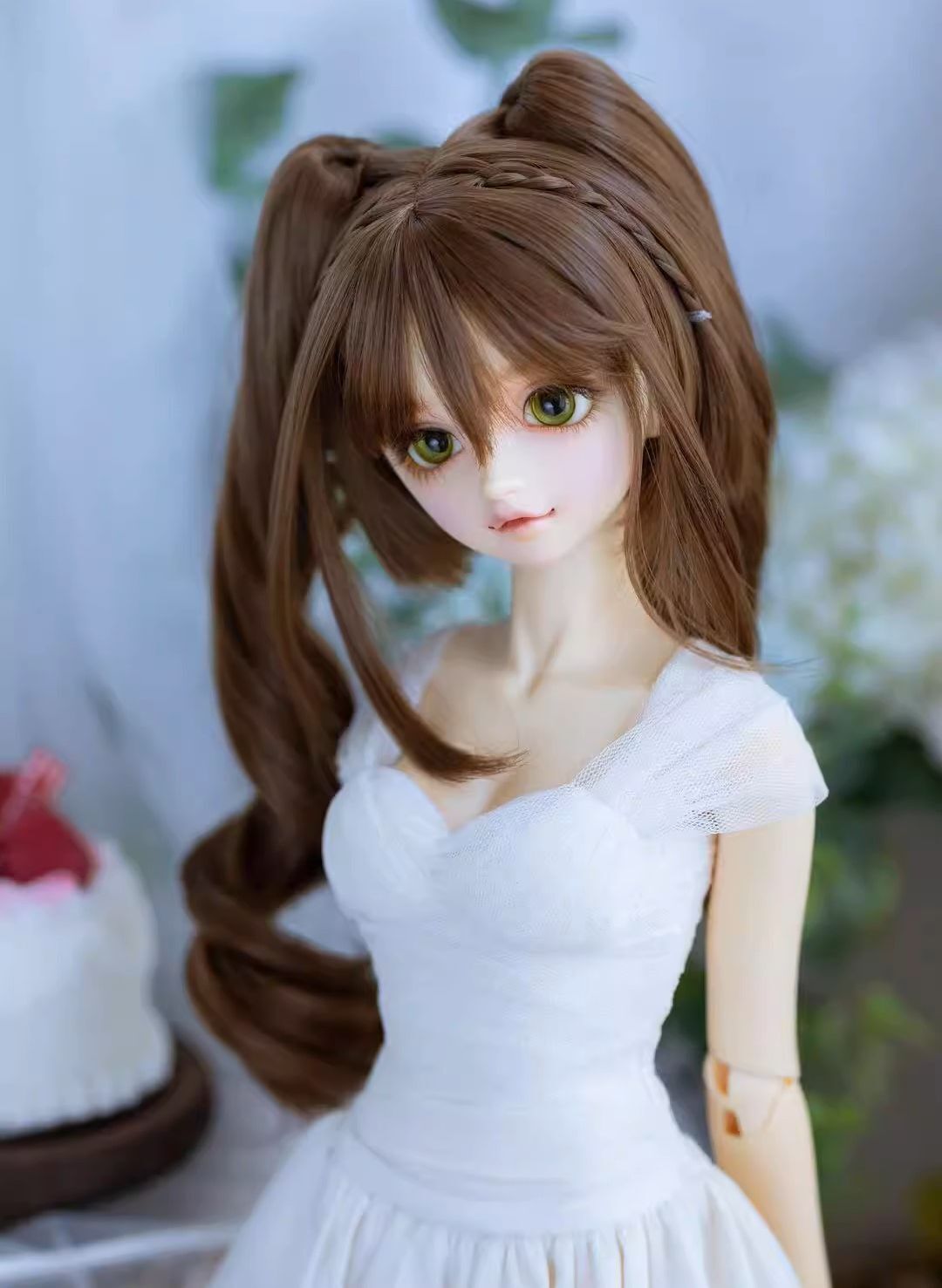• ツインカール三つ編みカチューシャヘア(パープル)【22-24cm:9-10inch】