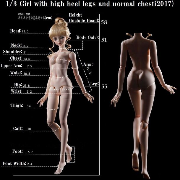 | 58cm Girl High Heel Leg & 普胸(2017): BH317123 | 58.1 | 22.5 | 8.3 | 12.5 | 23.5 | 16.5 | 25.6 | 16.8 | 5.1 | 33.5 | 13.5 | 6.4 | 2.4 | 8~9 | 16~18 | |