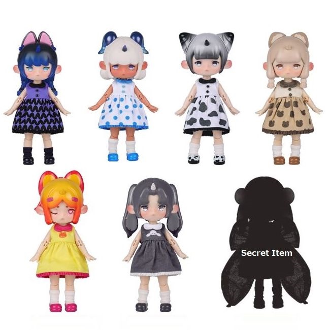 通常タイプ6種・シークレットタイプ1種の中(計7種)、ランダムでドールが6体入っています。(ドールタイプ重複なし)