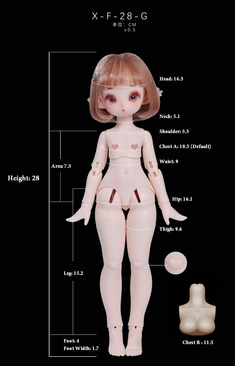 | X-F-28: B胸 | 28 | 16.3 | 5.1 | 5.3 | 11.5 | 9 | 16.1 | 7.5 | --- | 15.2 | 9.6 | 4 | 1.7 | 7~8 | 14 |