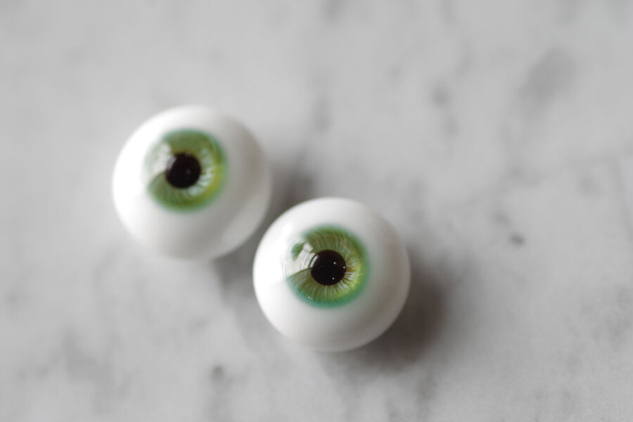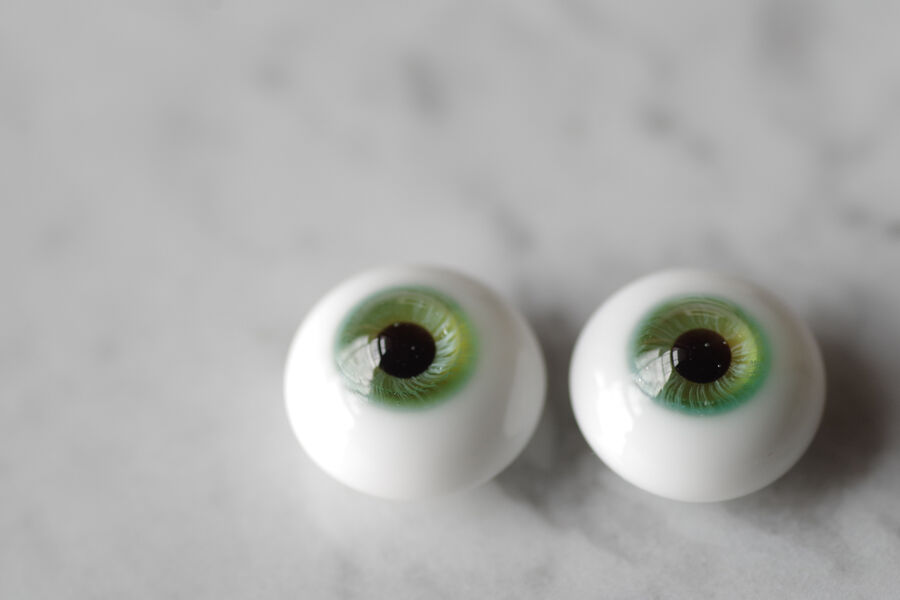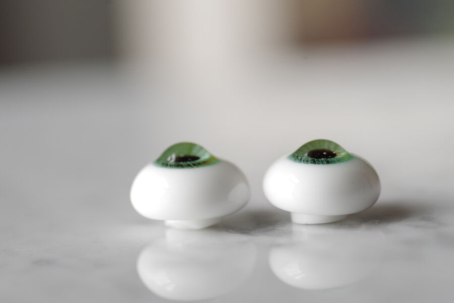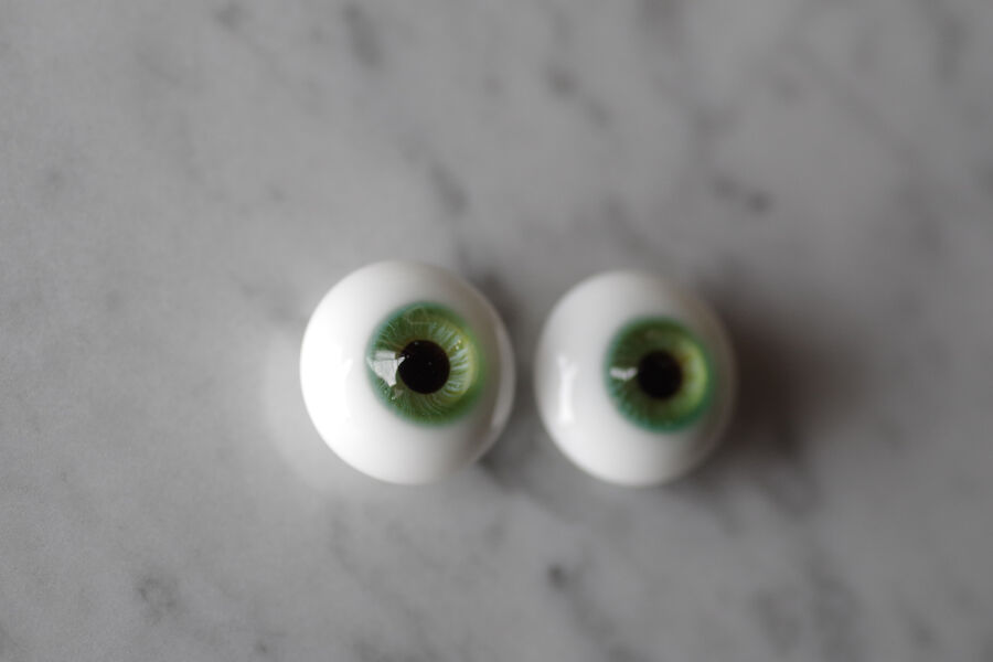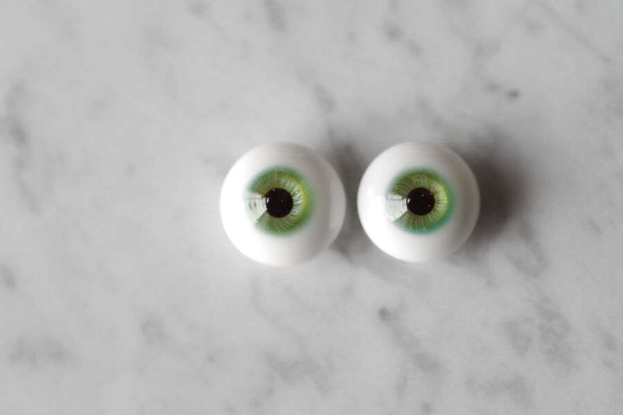 木漏れ日の光を閉じ込めたかのような、淡い翠緑の色彩が美しいグラスアイ。