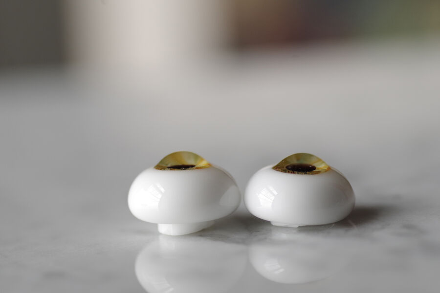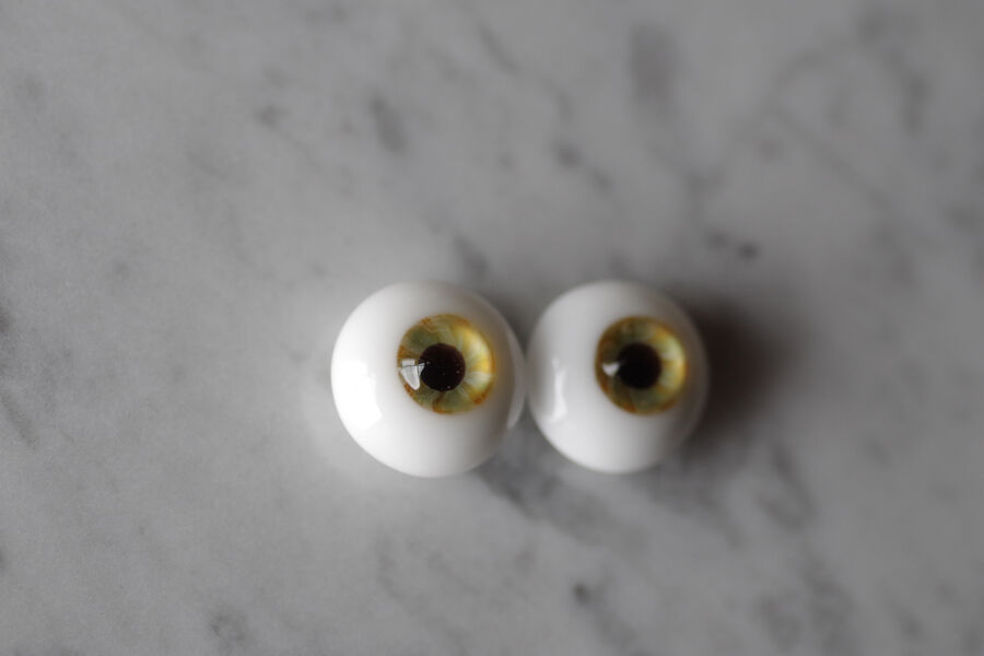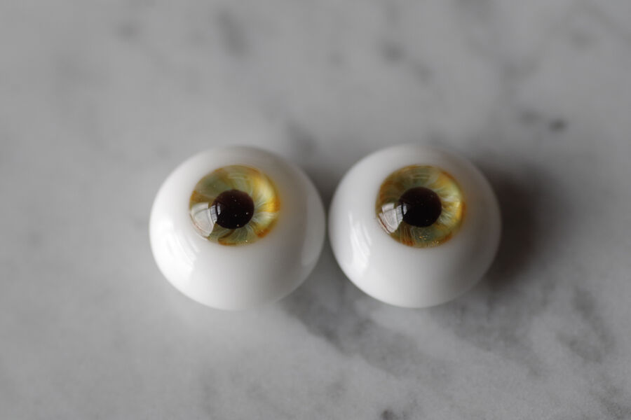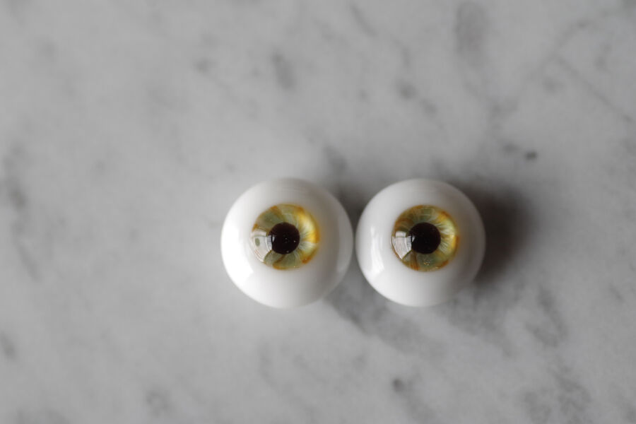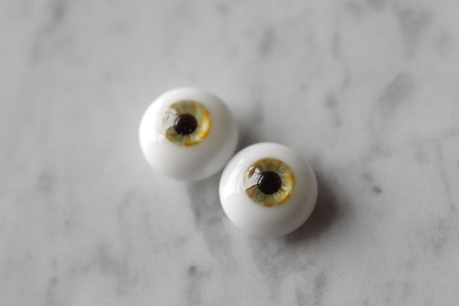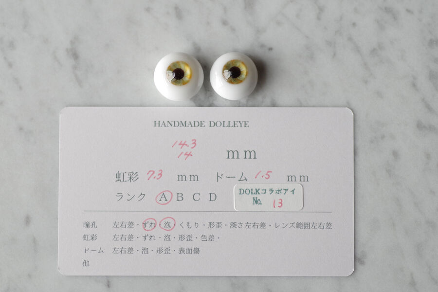 ※ レンズ部に細かい泡あり、ハンドメイドのため左右での色差、黒目の大きさやドームの高さの左右差など左右で同じ出来ではありません。予めご了承ください。