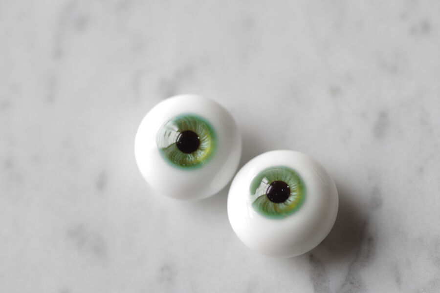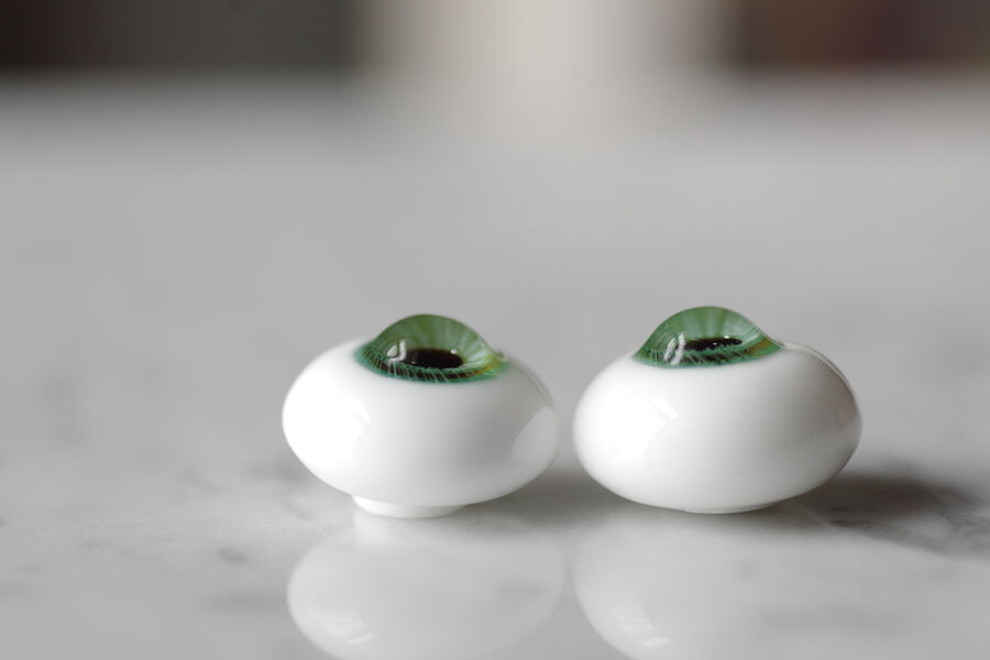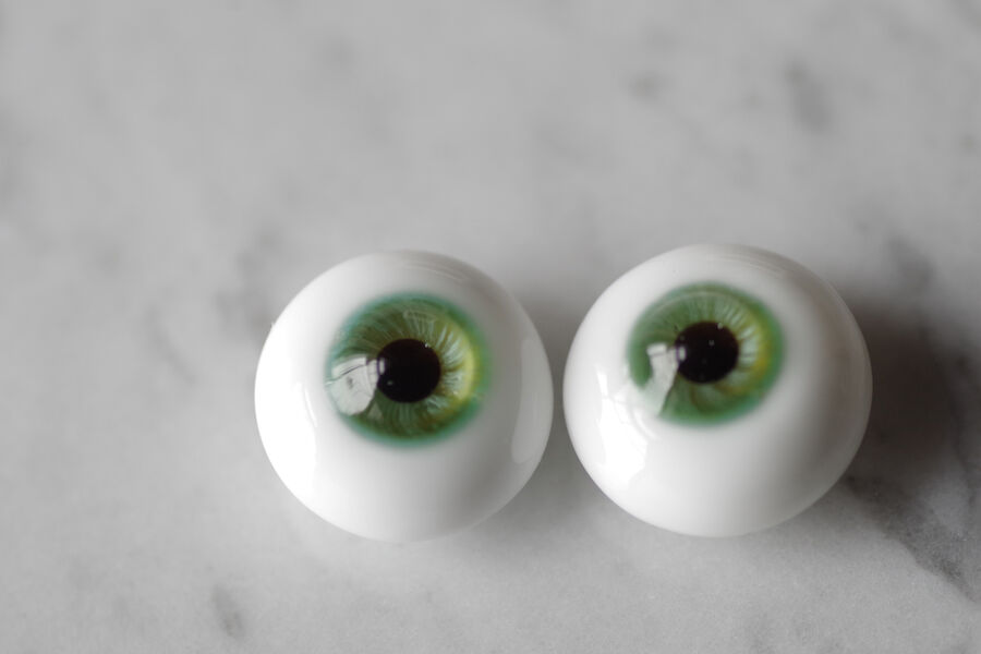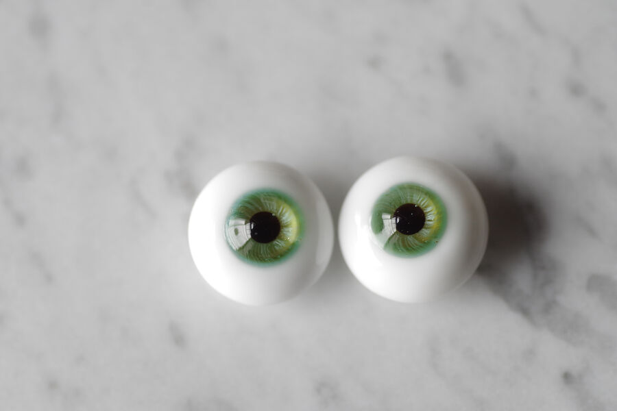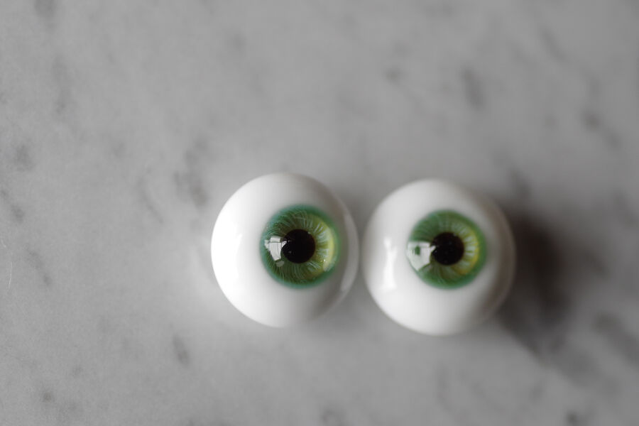 木漏れ日の光を閉じ込めたかのような、淡い翠緑の色彩が美しいグラスアイ。