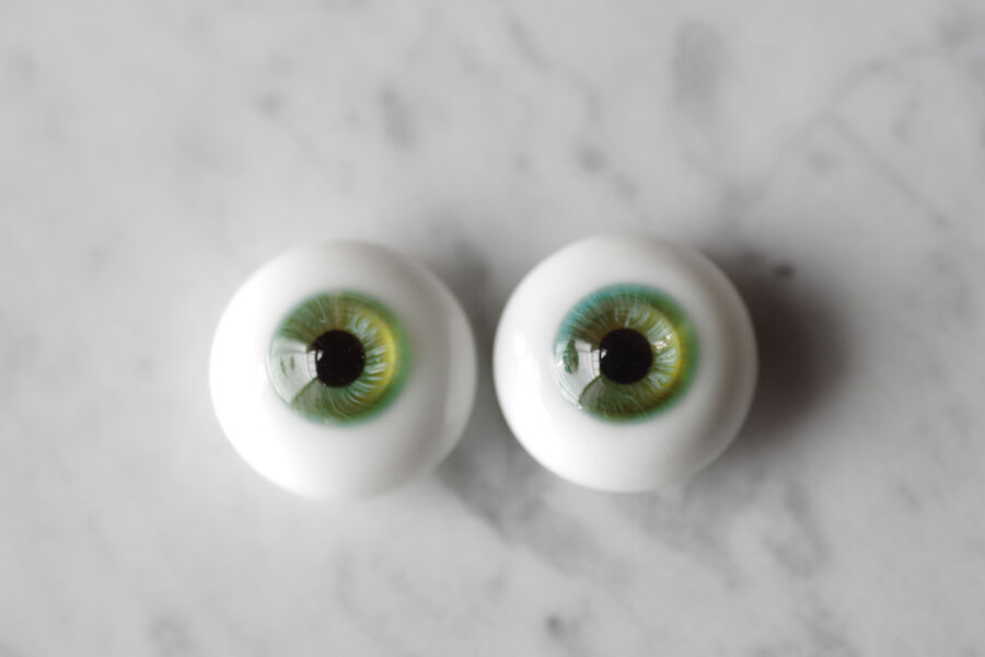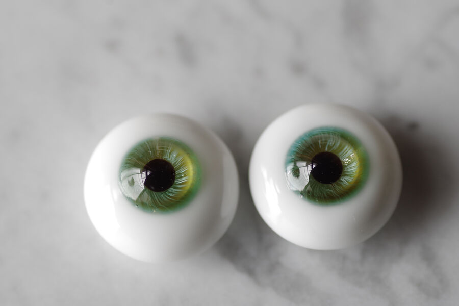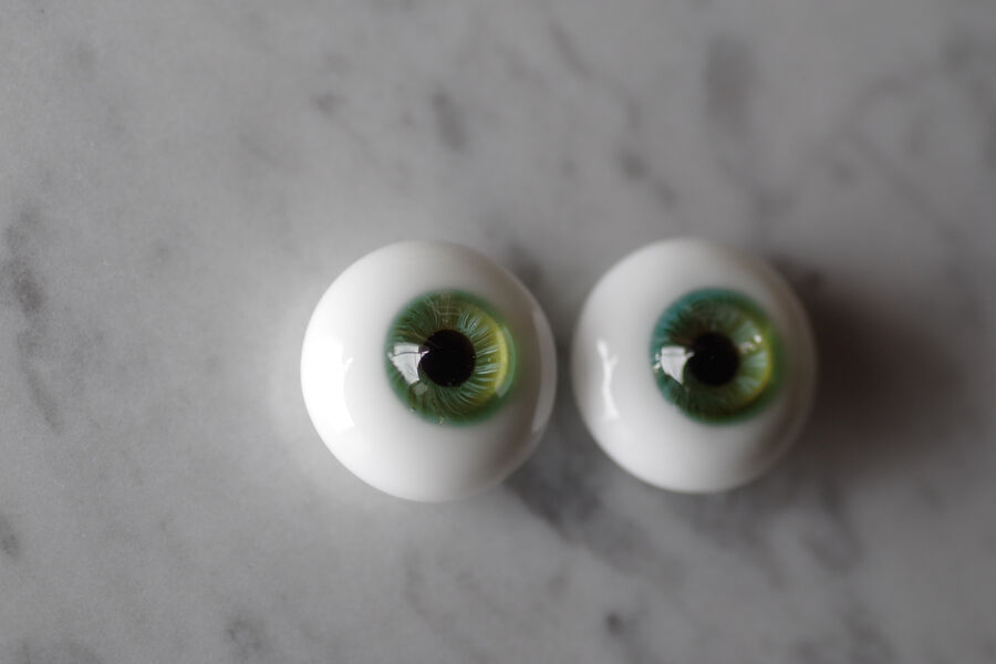 木漏れ日の光を閉じ込めたかのような、淡い翠緑の色彩が美しいグラスアイ。