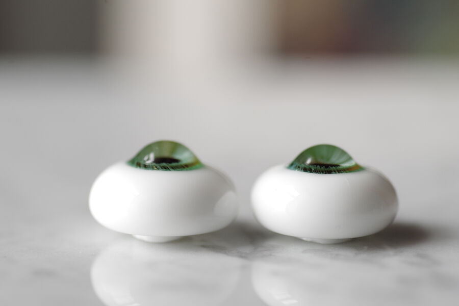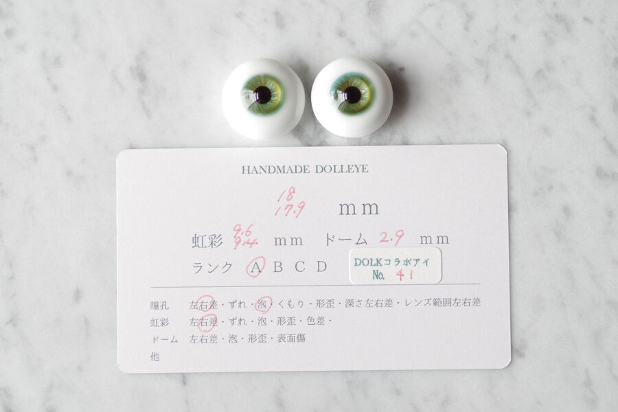 ※ レンズ部に細かい泡あり、ハンドメイドのため左右での色差、黒目の大きさやドームの高さの左右差など左右で同じ出来ではありません。予めご了承ください。