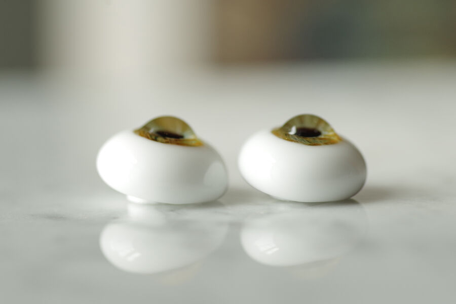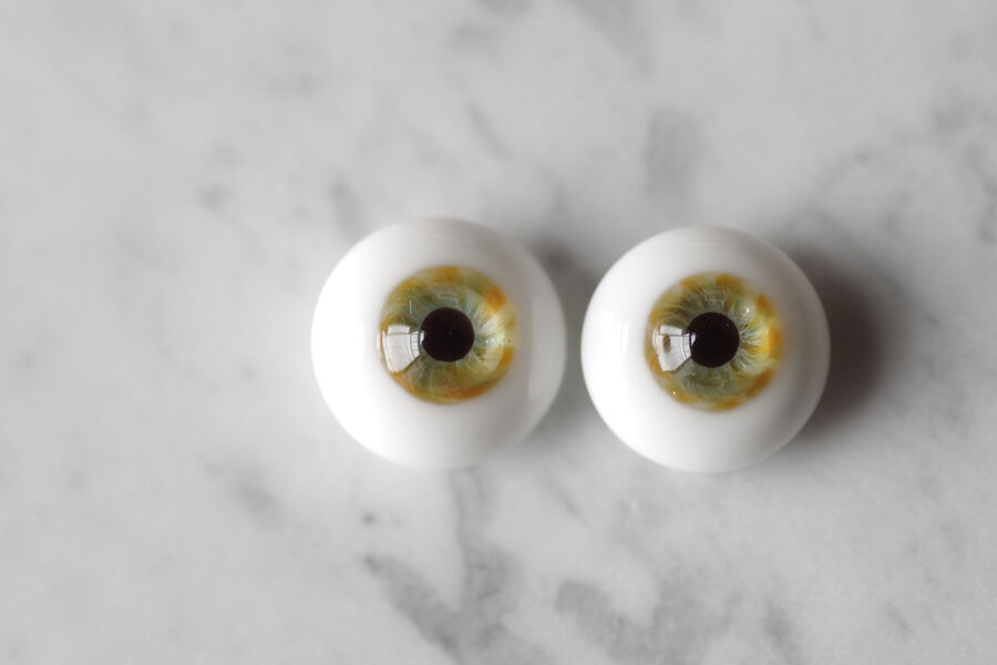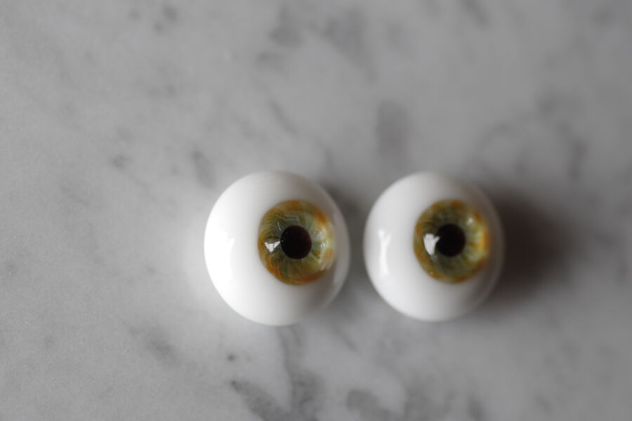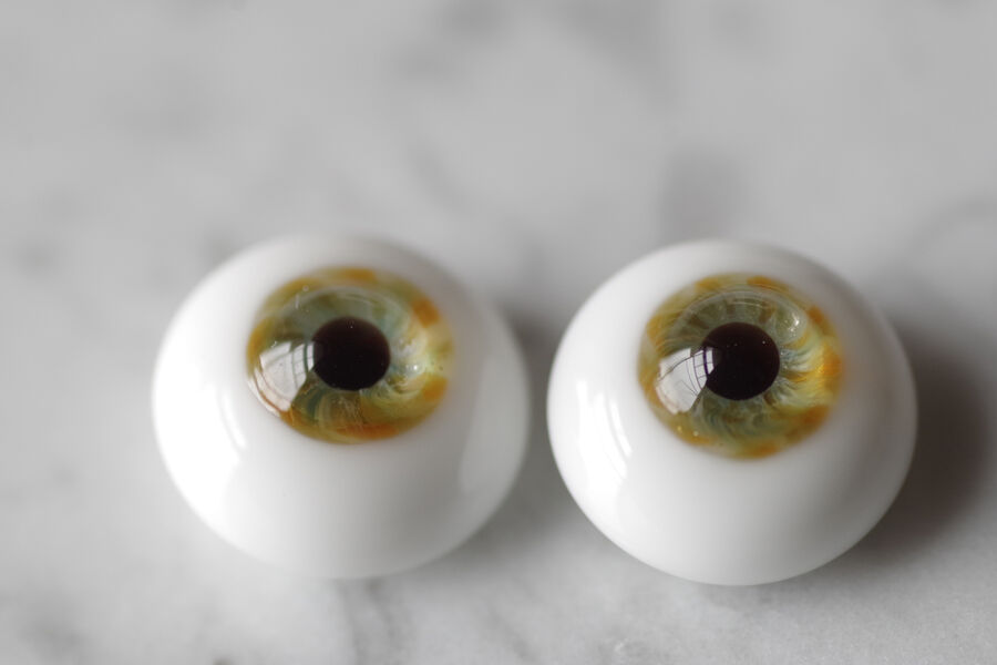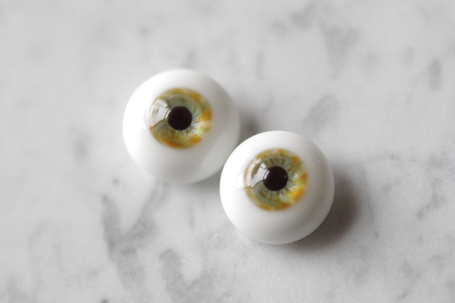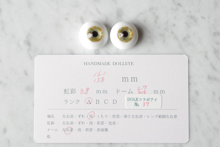 ※ レンズ部に細かい泡あり、ハンドメイドのため左右での色差、黒目の大きさやドームの高さの左右差など左右で同じ出来ではありません。予めご了承ください。