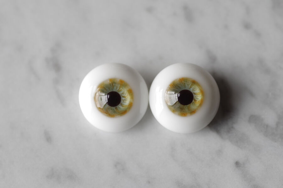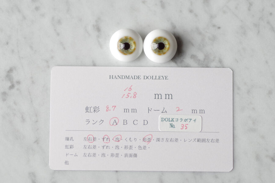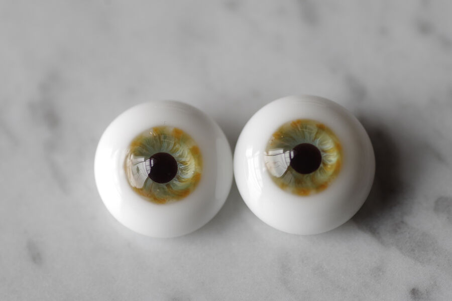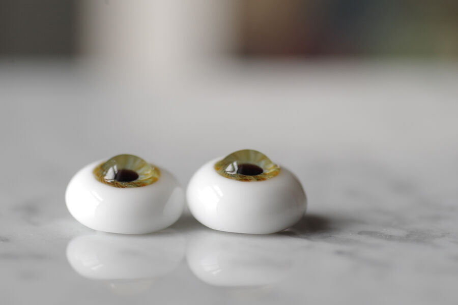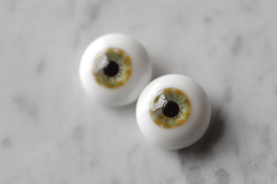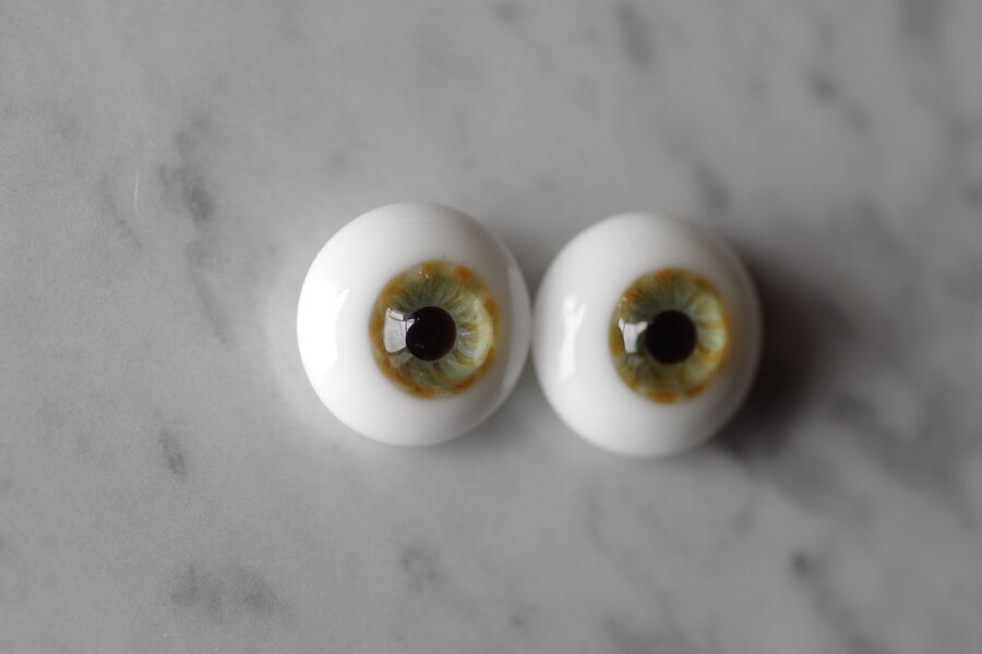 ※ レンズ部に細かい泡あり、ハンドメイドのため左右での色差、黒目の大きさやドームの高さの左右差など左右で同じ出来ではありません。予めご了承ください。