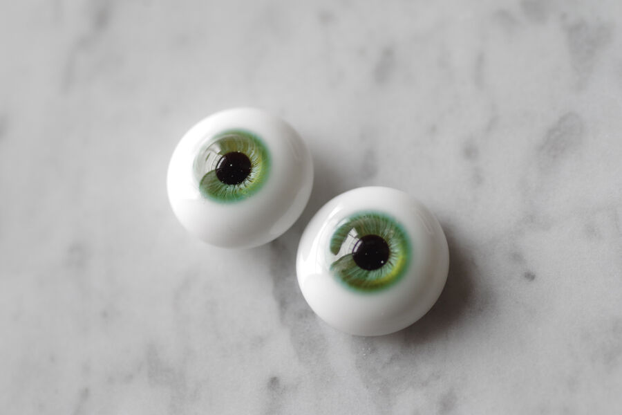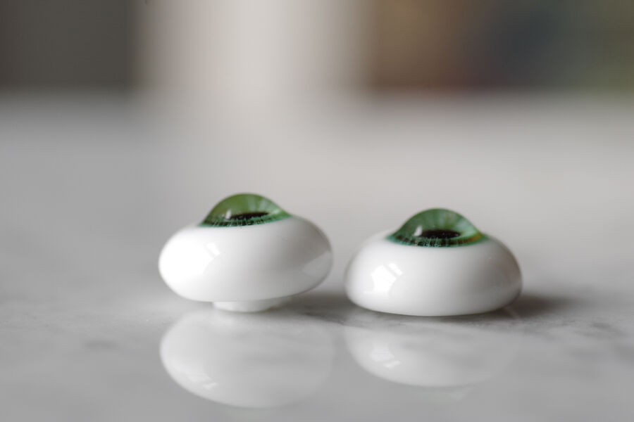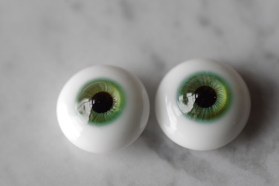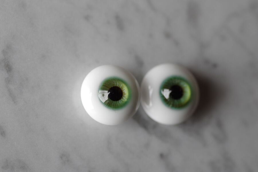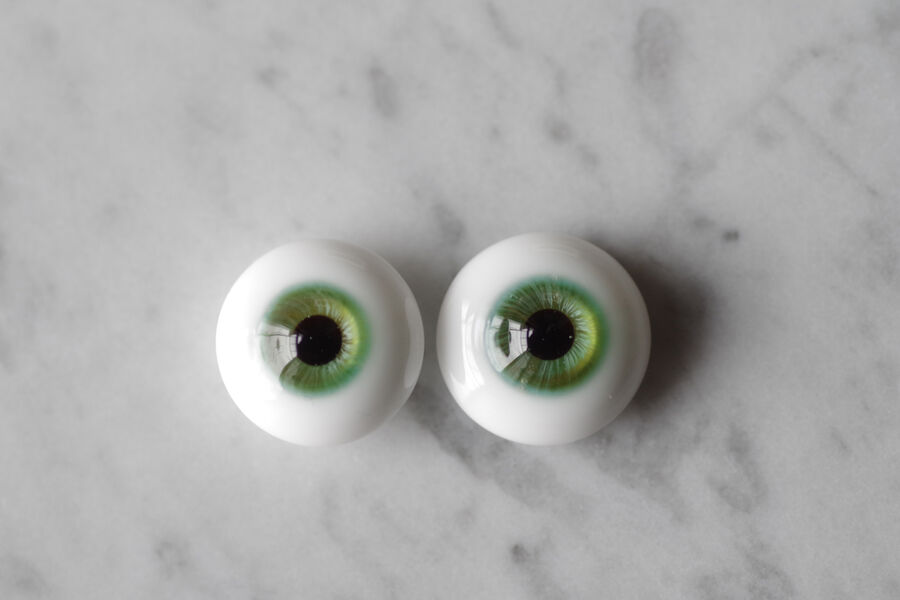 木漏れ日の光を閉じ込めたかのような、淡い翠緑の色彩が美しいグラスアイ。