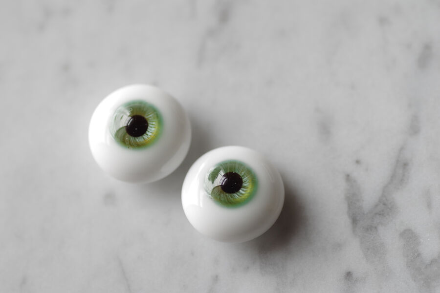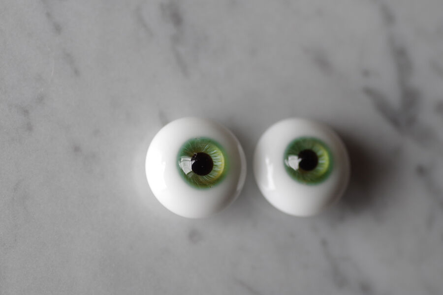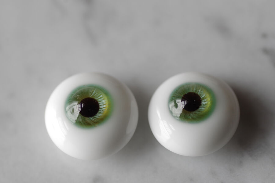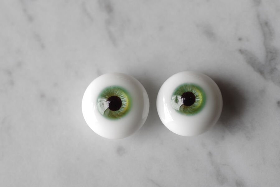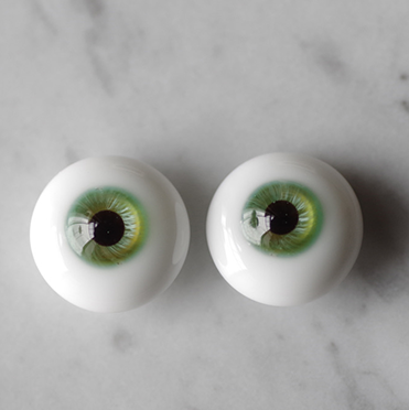木漏れ日の光を閉じ込めたかのような、淡い翠緑の色彩が美しいグラスアイ。