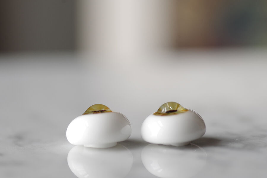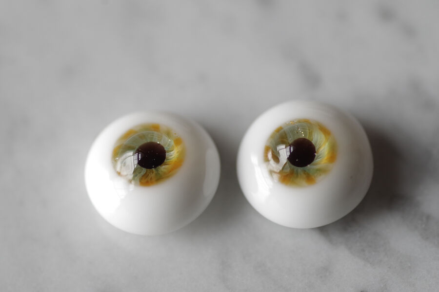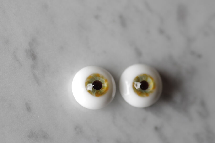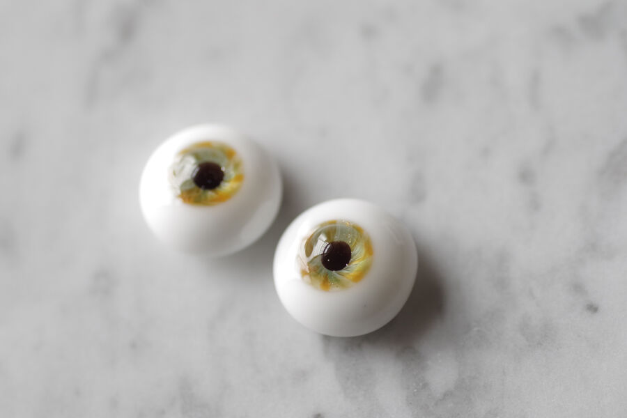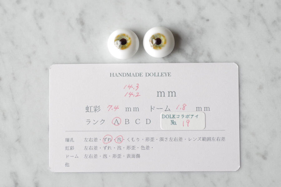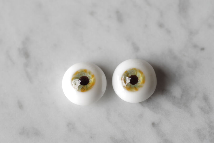 ※ レンズ部に細かい泡あり、ハンドメイドのため左右での色差、黒目の大きさやドームの高さの左右差など左右で同じ出来ではありません。予めご了承ください。