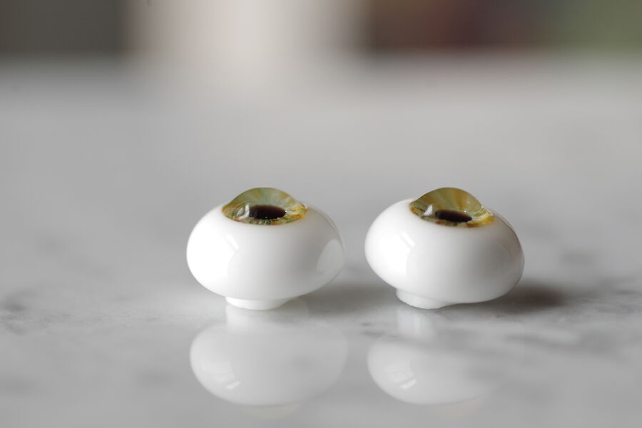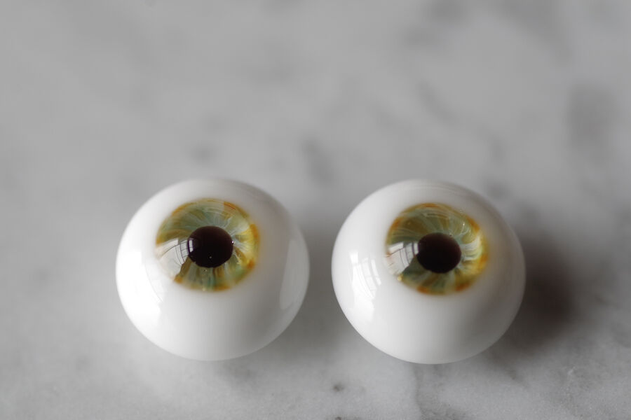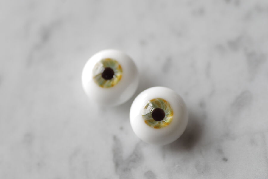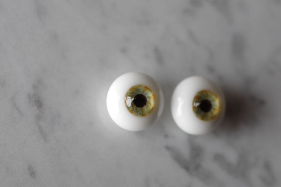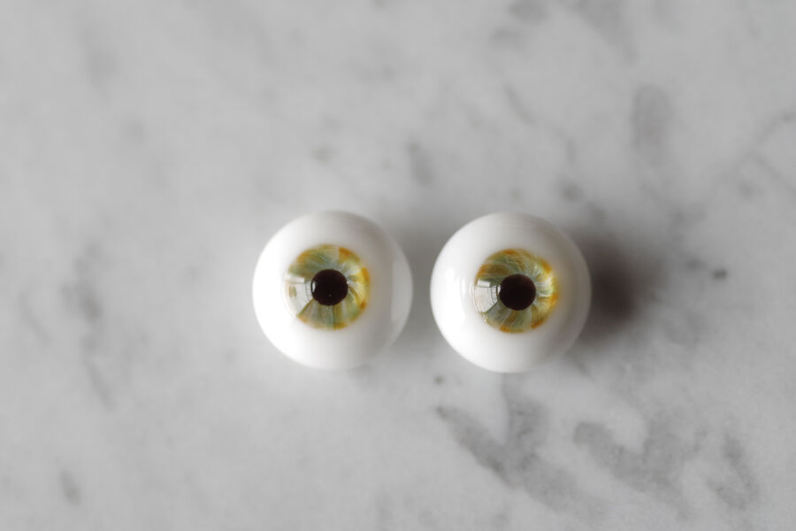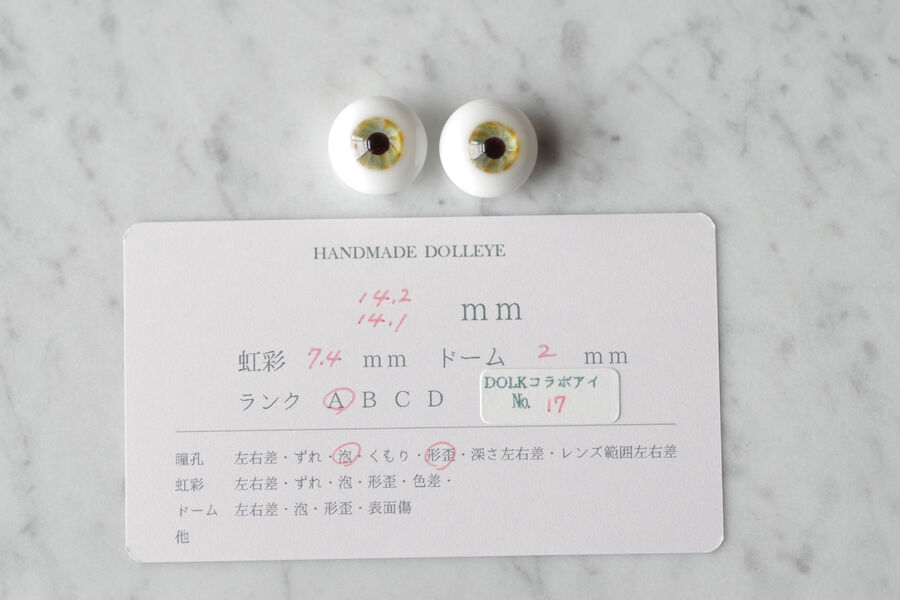 ※ レンズ部に細かい泡あり、ハンドメイドのため左右での色差、黒目の大きさやドームの高さの左右差など左右で同じ出来ではありません。予めご了承ください。