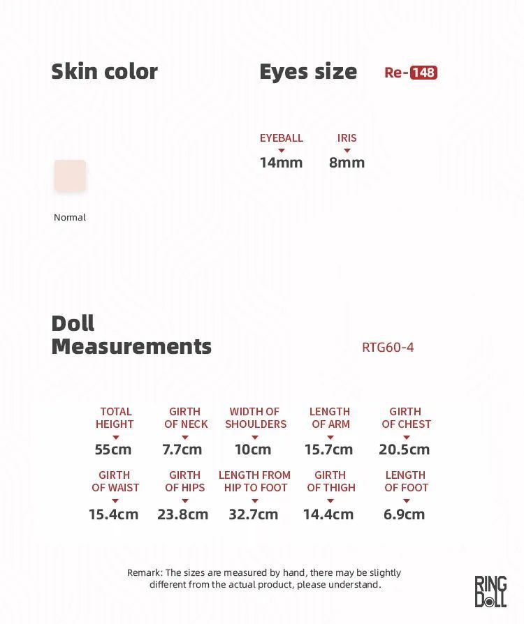 ※ 各サイズはメーカー公式データを記載しています。実際のドール・アイテムには個体差により多少の誤差があります。