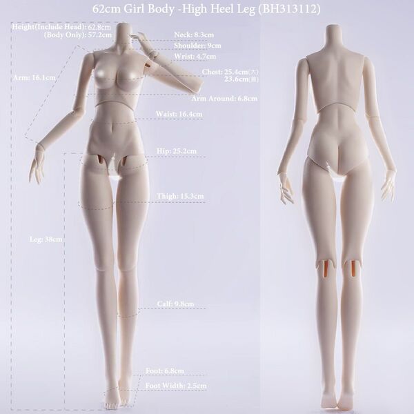 | 62cm Girl High Heel Leg & 普胸: BH313112 | 62.8 | 22.2 | 8.3 | 12.3 | 23.6 | 16.4 | 25.2 | 16.1 | 4.7 | 38 | 15.3 | 6.8 | 2.5 | 8~9 | 14 |