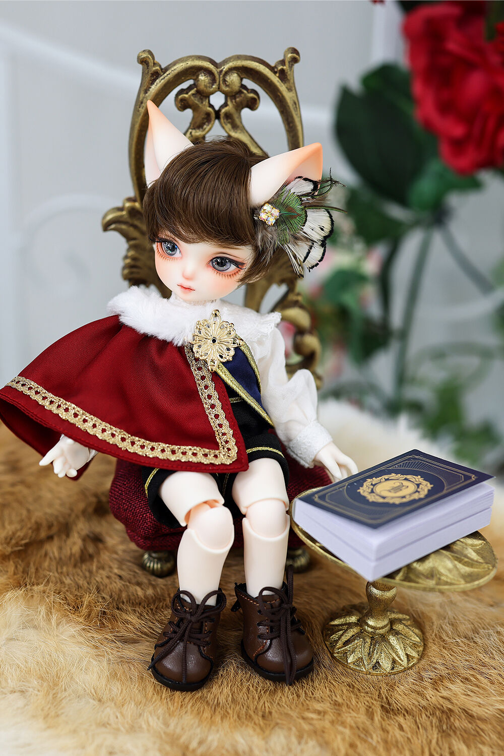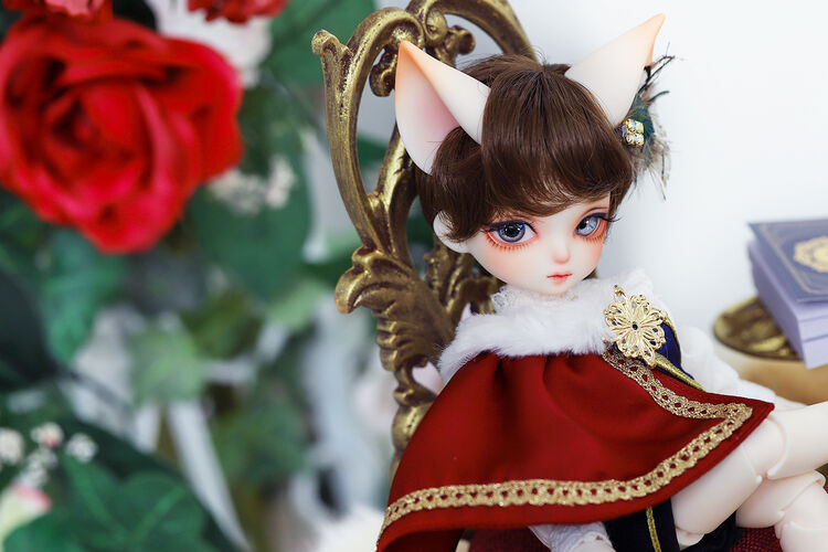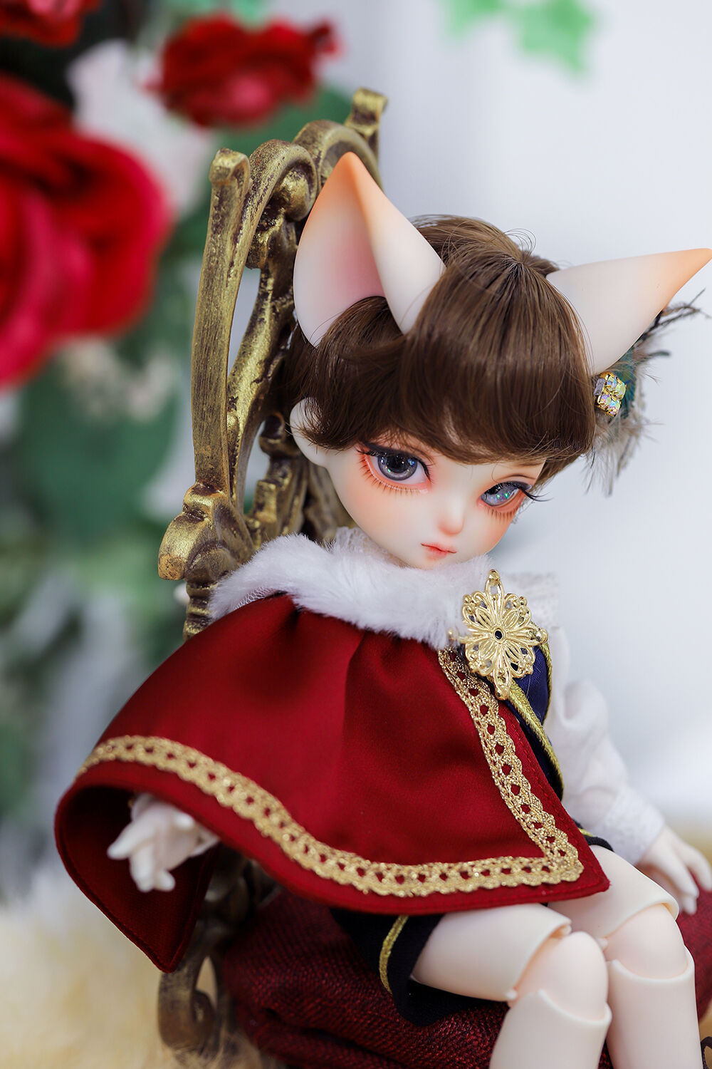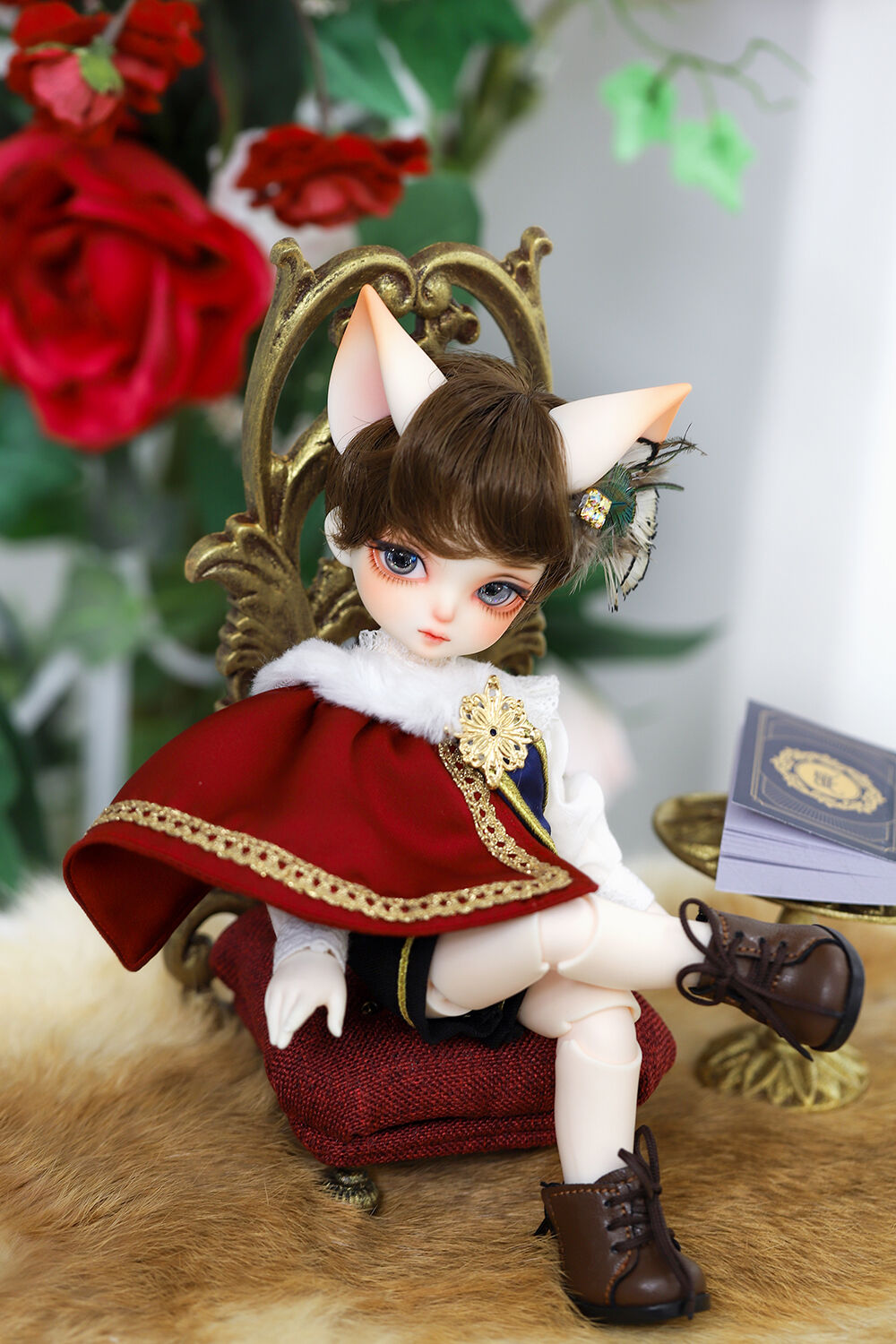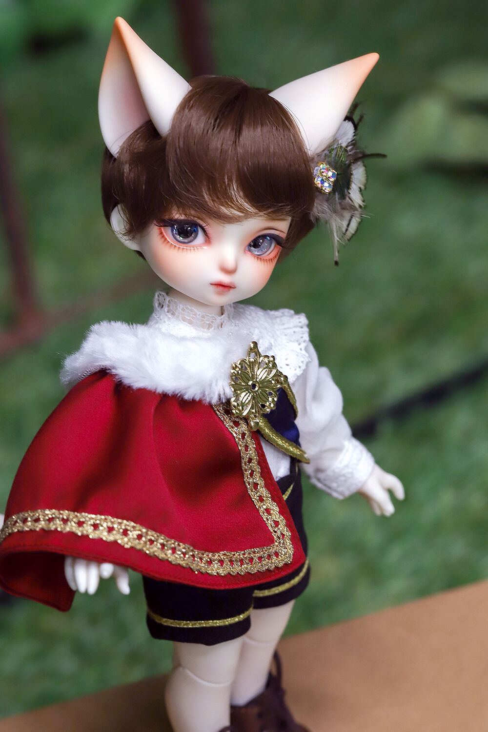 どこか飄々とした印象を醸す羽根の髪飾りや、王家の勲章煌めくペリースが、BENJAMINの風貌を立派な猫銃士へと完成させています。
