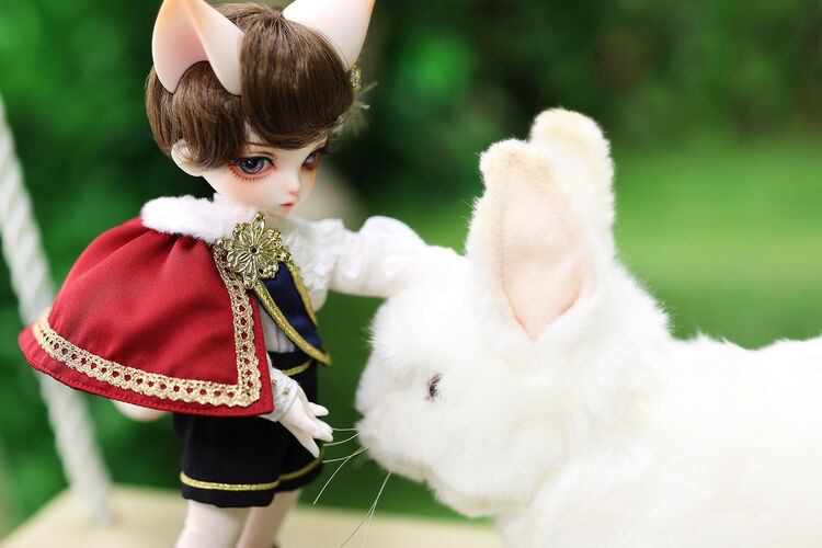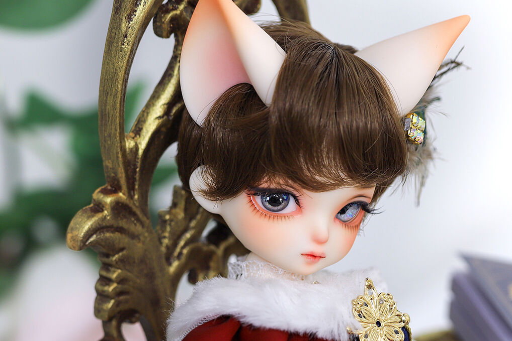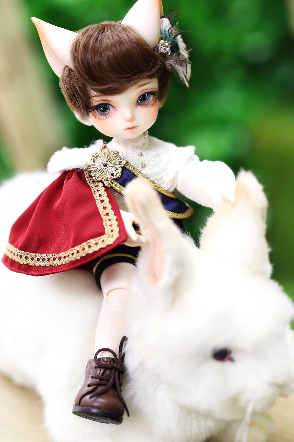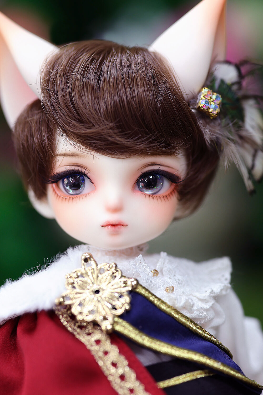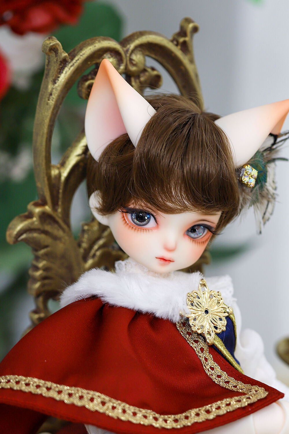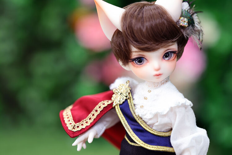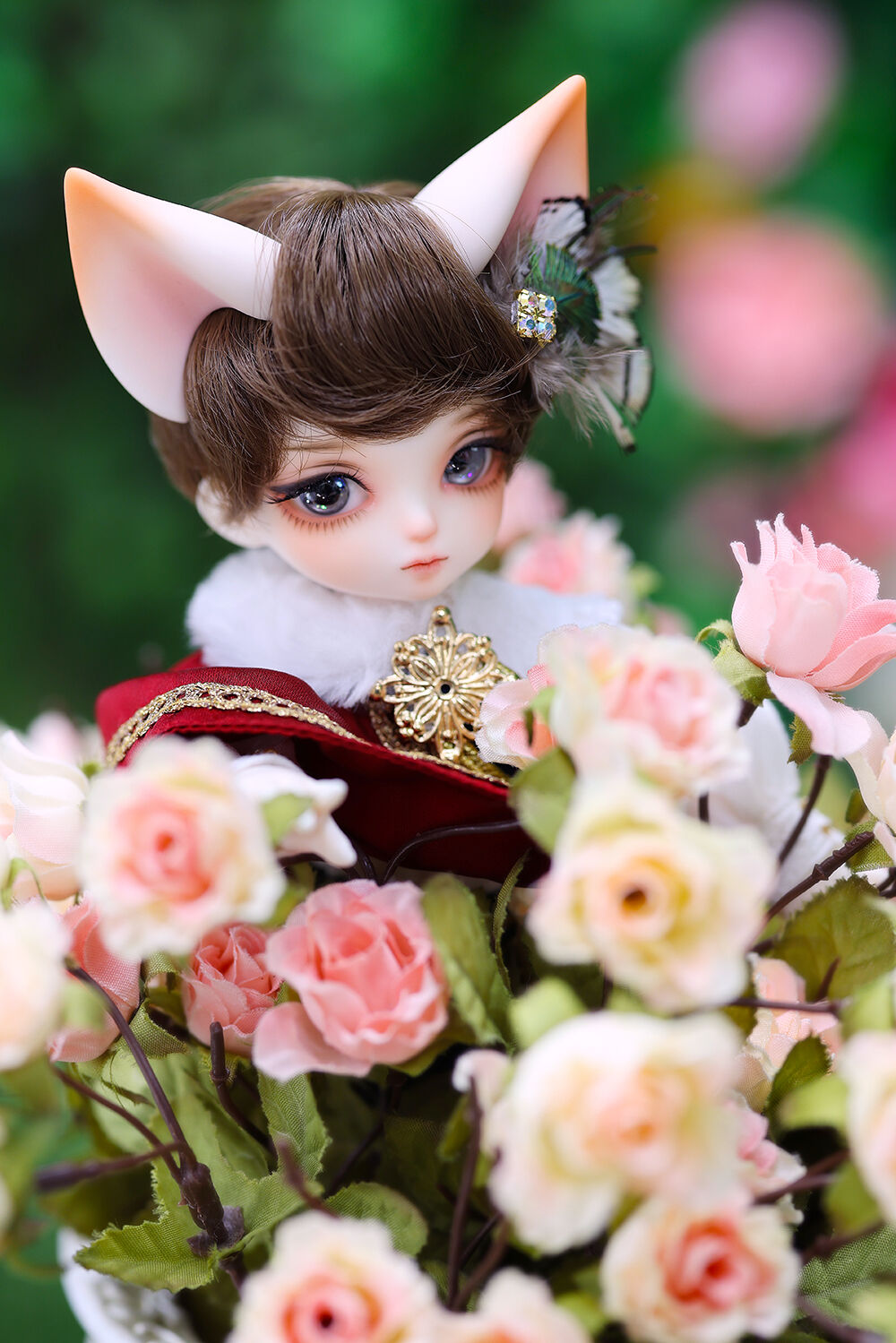 どこか飄々とした印象を醸す羽根の髪飾りや、王家の勲章煌めくペリースが、BENJAMINの風貌を立派な猫銃士へと完成させています。