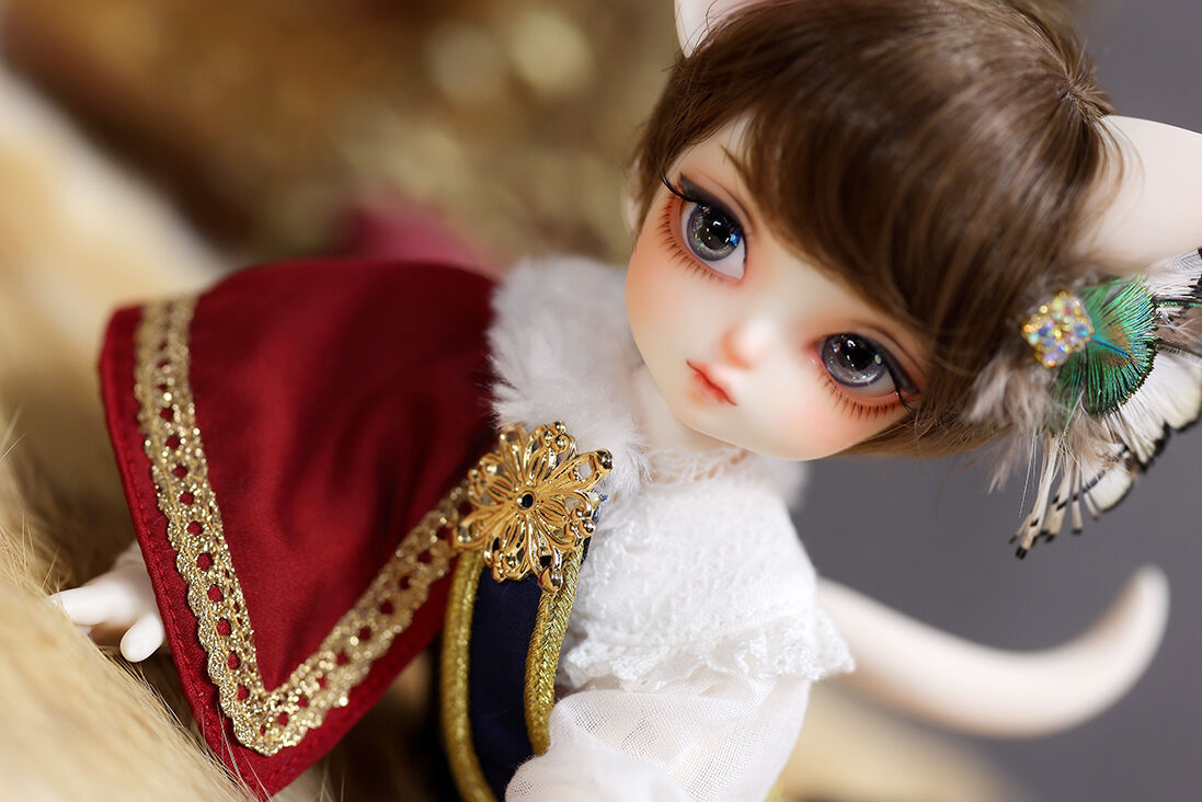 冒険活劇・三銃士の舞台ともなったフランスの伝統色であるルージュ・ブラン・ブルーの色合いを全体に落とし込み、上品なゴールドを差し色に仕立てることで、中世ヨーロッパ風の銃士の出立ちを表現しています。独特の世界観を演出する羽根の髪飾りも付属。異国情緒あふれる構成品の数々にご注目ください。