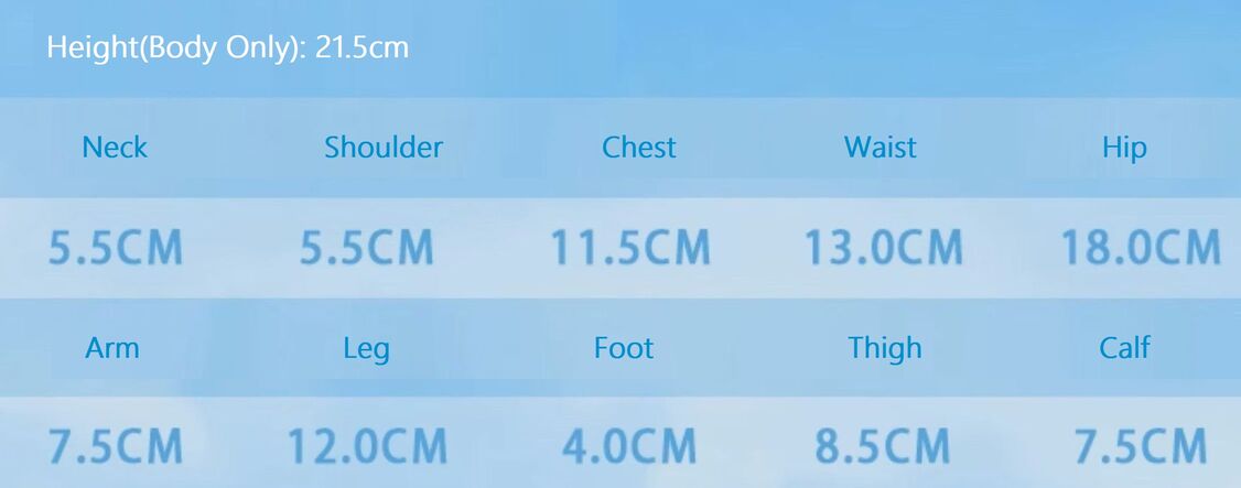 | 1/6 Body | 27 | 18.5 | 5.5 | 5.5 | 11.5 | 13 | 18 | 7.5 | --- | 12 | 8.5 | 4 | --- | 7~8 | 16 |