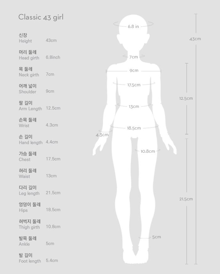 ※ 各サイズはメーカー公式データを記載しています。実際のドール・アイテムには個体差により多少の誤差があります。