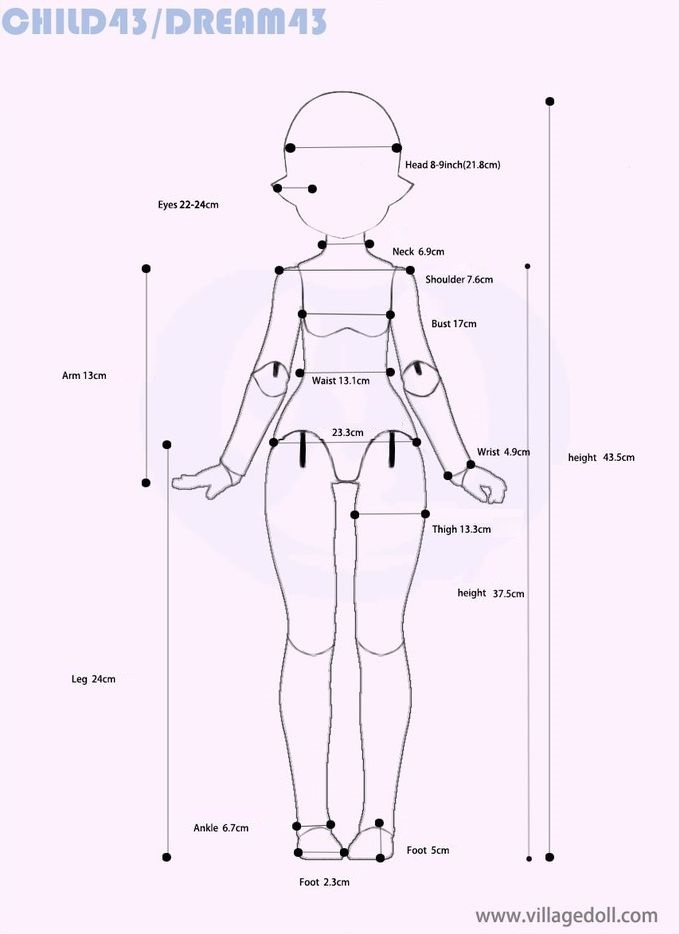 | 43cm Girl: M | 43.5 | 19.1 | 6.9 | 7.6 | 17.4 | 13.1 | 23.3 | 13 | 4.9 | 24 | 13.3 | 5 | 2.3 | 8~9 | 22~24 |