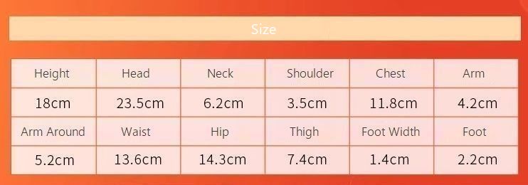 ドール本体、またはモデルドール、または商品のサイズ情報が表示されます。