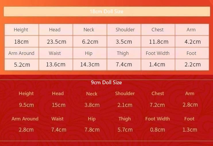 ドール本体、またはモデルドール、または商品のサイズ情報が表示されます。