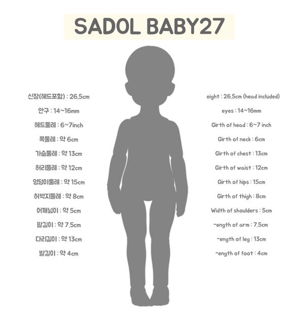 Baby27: 26.5cm 26.5 16.5 6 5 13 12 15 7.5 --- 13 8 4 --- 6~7 14~16