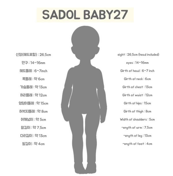 Baby27: 26.5cm 26.5 16.5 6 5 13 12 15 7.5 --- 13 8 4 --- 6~7 14~16