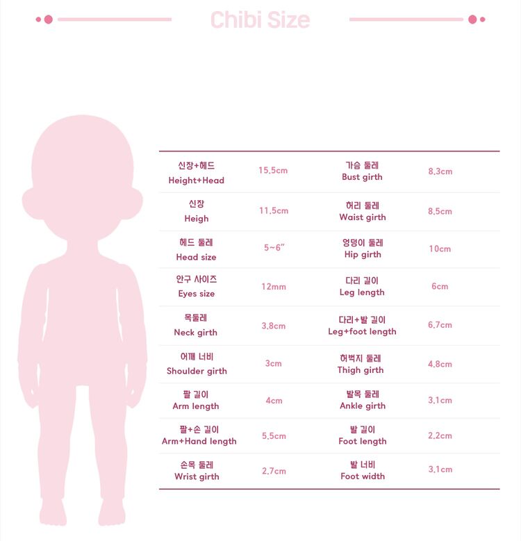 | CHIBI Body | 15.5 | 14 | 3.8 | 3 | 8.3 | 8.5 | 10 | 4 | 2.7 | 6 | 4.8 | 2.2 | 3.1 | 5~6 | 12~14 |