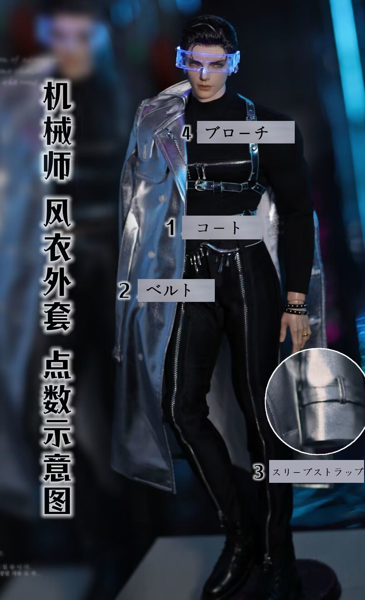 • Mechanic Cyberpunk Trench Coat Set(Black Silver)+Blue Suspenders-SD13