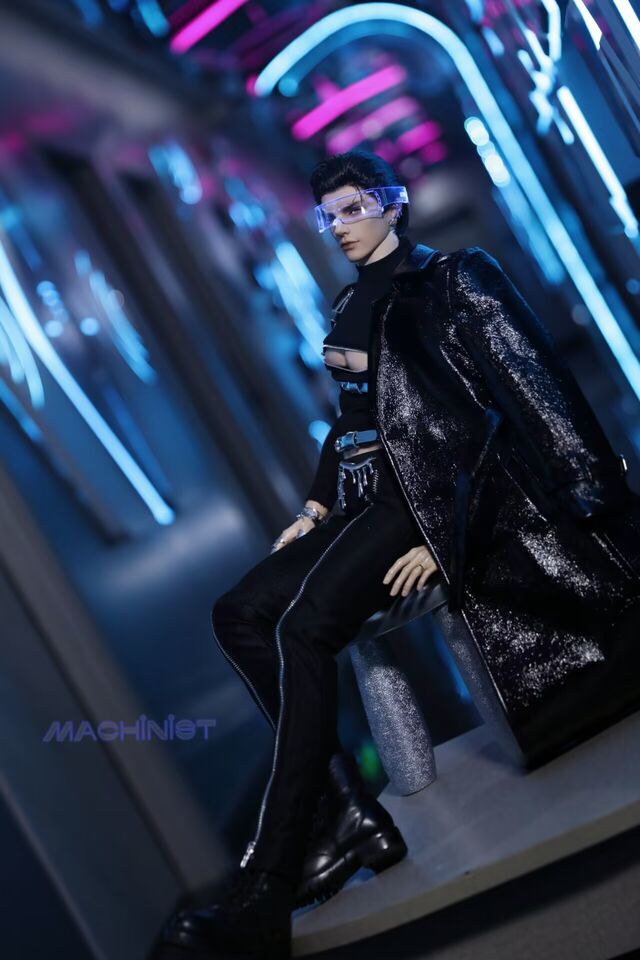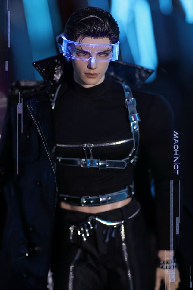 • Mechanic Cyberpunk Trench Coat Set(Black Silver)+Blue Suspenders-SD17
